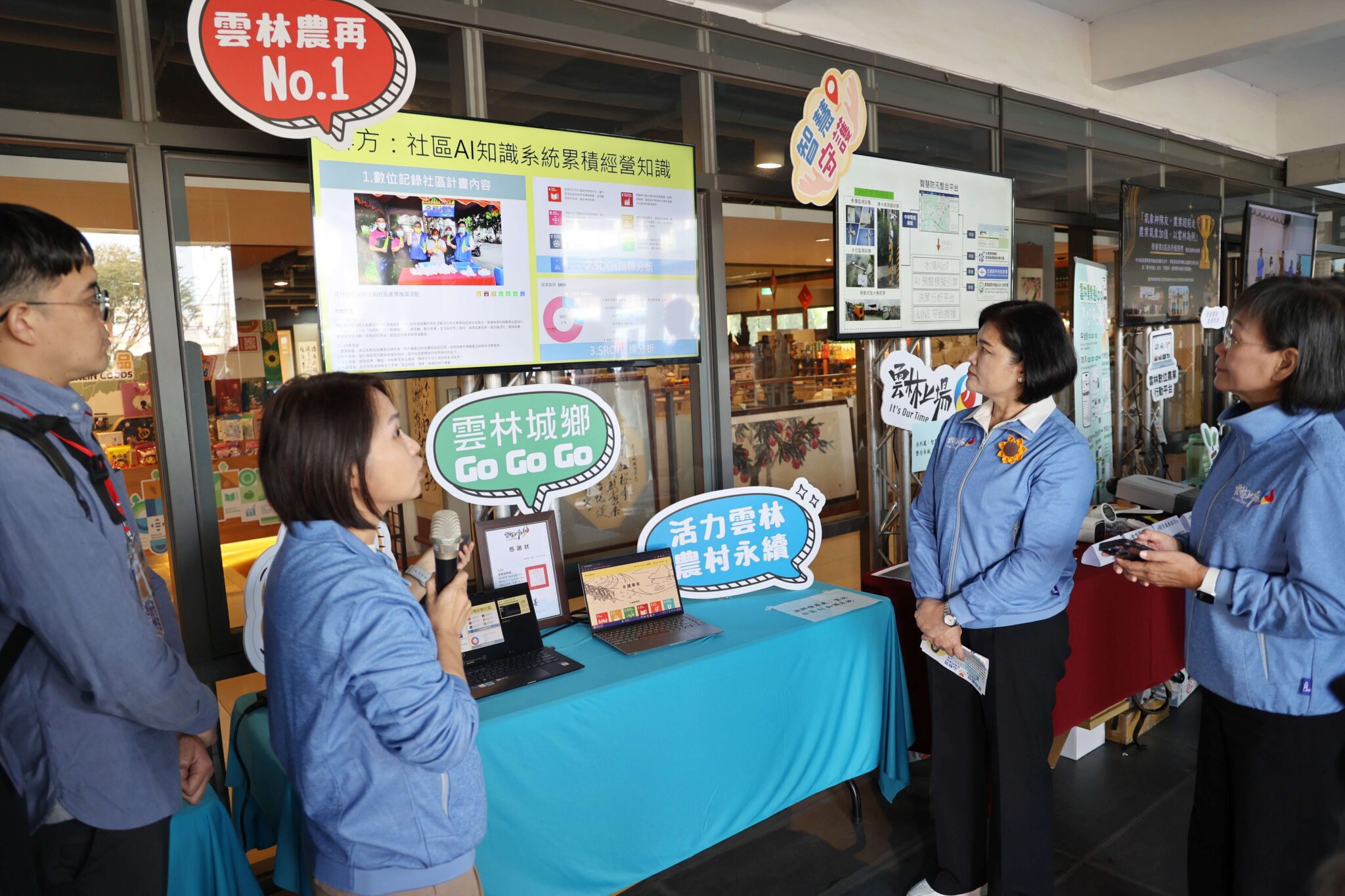 在農業、教育與社區領域,張麗善縣長指出,縣府推動氣候調適農業示範、精進「雲林農情通」AI 淹水預報,並透過「雲林小智」整合生活資訊,特別感謝中央氣象署及呂國臣署長,長期提供穩定且高品質的氣象數據,讓地方政府能把資料真正轉化為農民用得到的決策工具。對此,中央氣象署呂國臣署長也感謝有這機會跟雲林縣政府合作,氣象署有很多過去淹水期間下雨資料透過結合AI演算,比如說雨會怎麼下,下的時候水會怎麼淹,氣象署將持續與縣府合作,提供更多未來預報及預警資料,讓縣民在生活方面會多一些保障;教育上建構AI學習體系;社區治理則首創社區AI知識系統,協助永續發展決策。