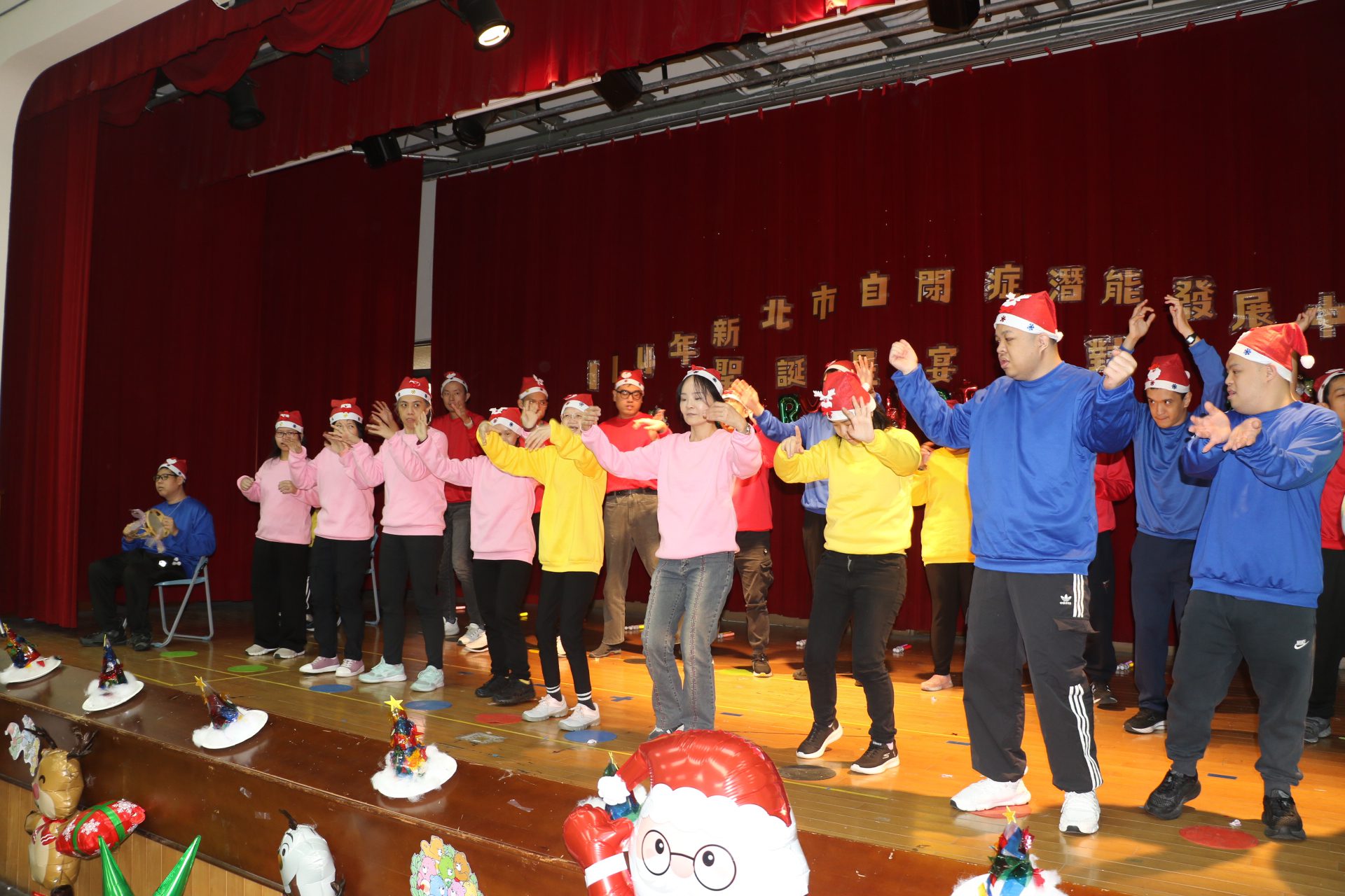 新北市社會局委託自閉症服務協進會辦理的自閉症潛能發展中心,今(24)日上午在三重社福大樓演藝廳舉辦「聖誕星宴Party」活動,有星兒原本賴在地上翻滾,看見白鬍子又穿著紅衣的聖誕老公公發送禮物,馬上爬起來接,讓一旁的爸媽又心疼又好笑。