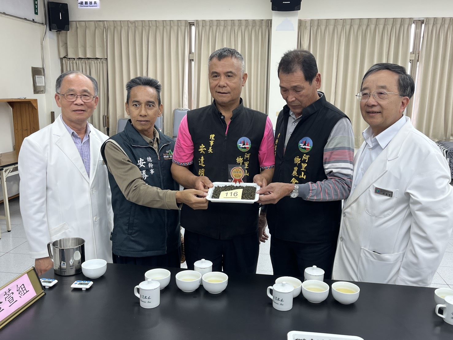 嘉義縣阿里山鄉農會辦理2025阿里山冬季高海拔優良茶競賽,繳茶點數總共533點,包括青心烏龍組385點及金萱茶組148點參賽,由茶改場副場長邱垂豐、前茶改場魚池分場長郭寬福進行評審,今24日宣布得獎名單,烏龍組及金萱組特等獎分別由邱詩富與陳逸謙獲獎。