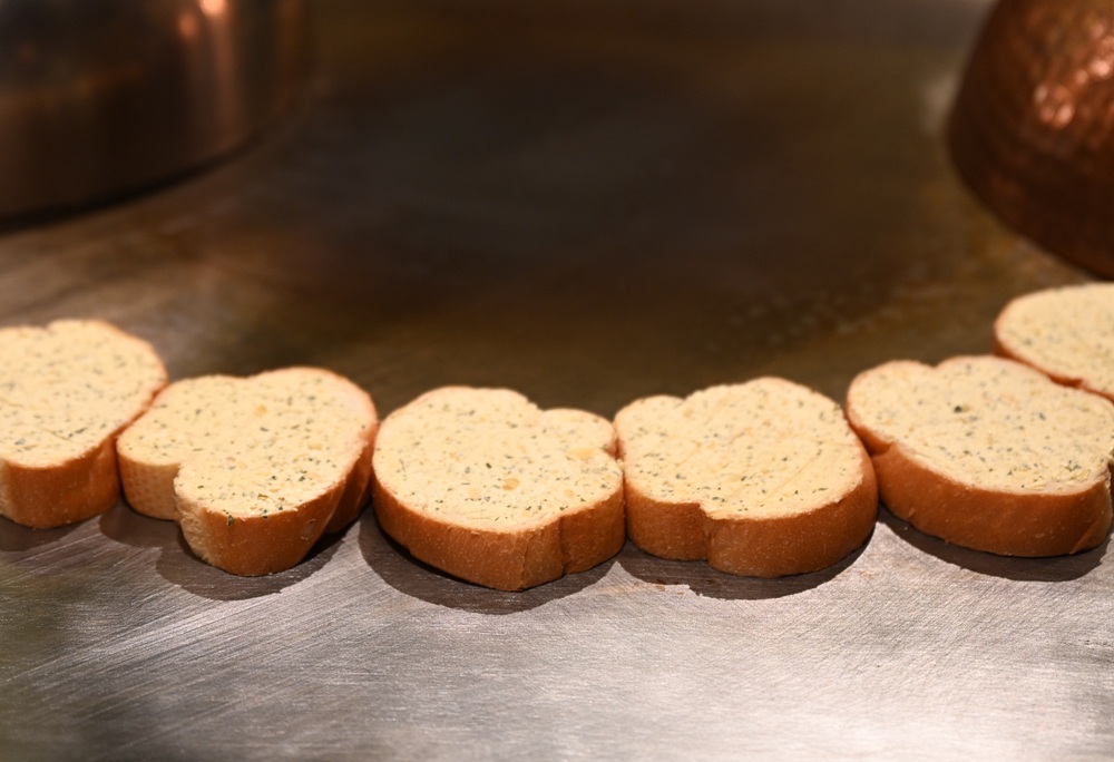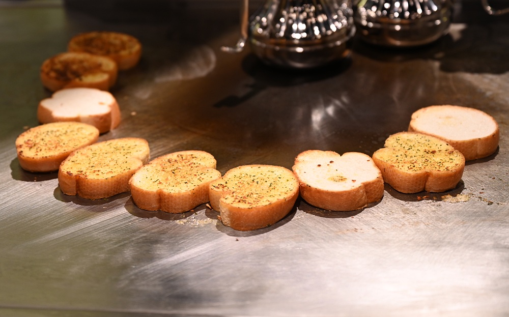 看著師傅在鐵板上烘烤蒜香麵包,真是療癒。