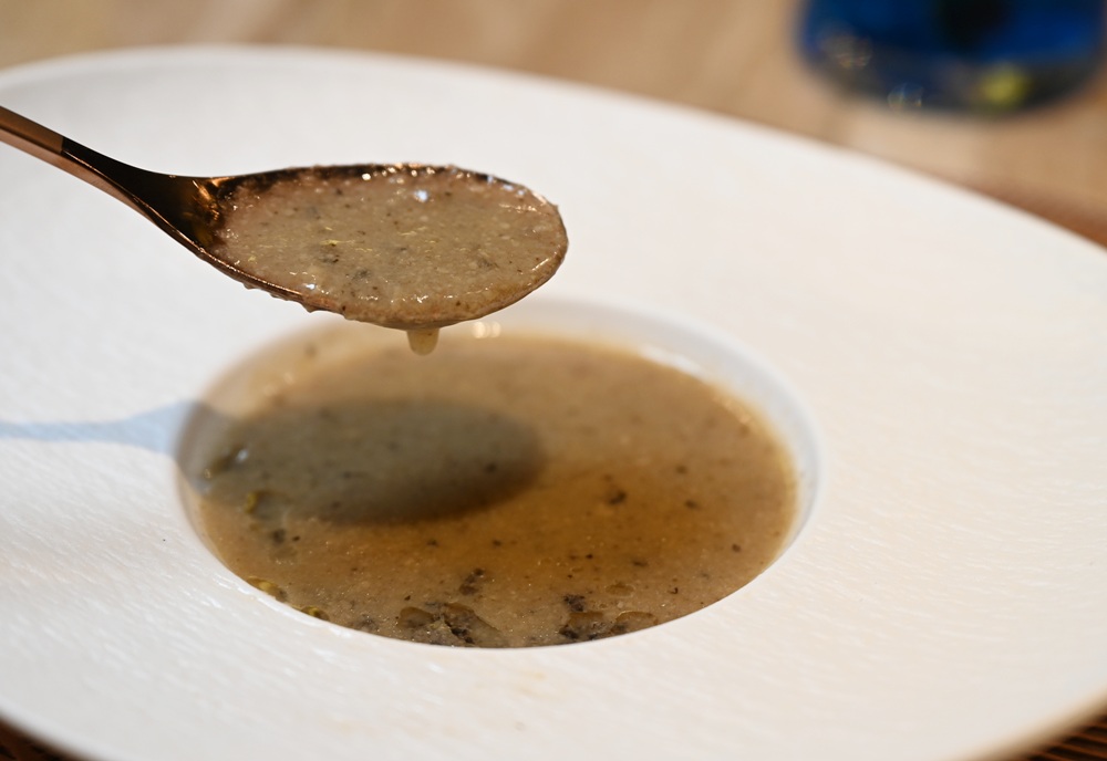 菌菇濃湯超濃郁的,口感滑順細膩,每一口都能品嚐到菇類的自然鮮味。