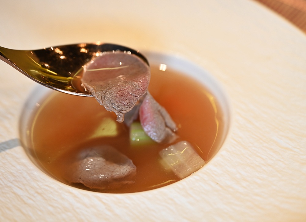 以鮮美牛肉湯底汆燙牛肉片,肉質鮮嫩多汁,搭配清爽湯頭,入口即能品嚐到牛肉的自然鮮味。