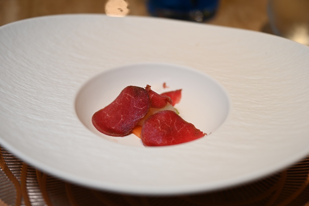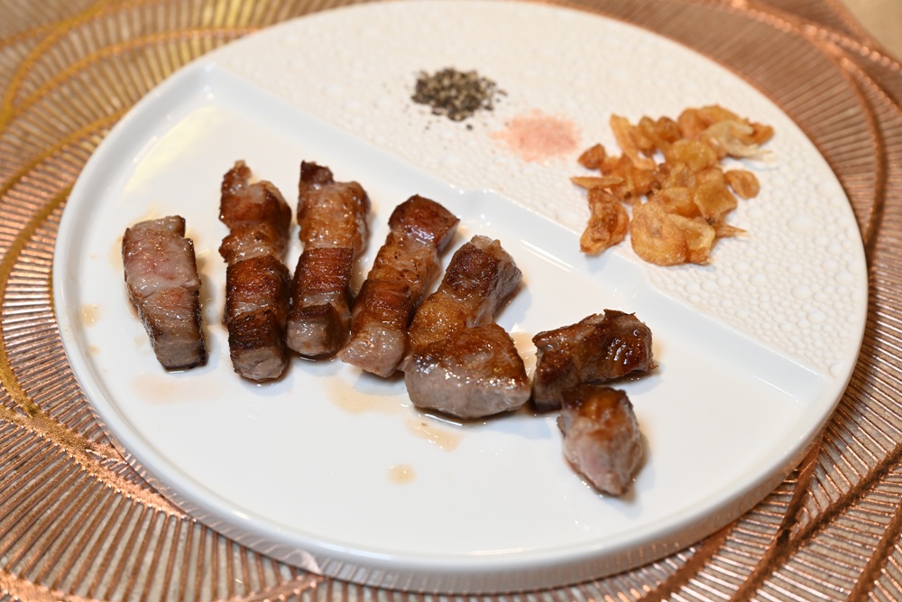 一走進餐廳,映入眼簾的是沉穩中帶點奢雅的空間氛圍,金色系裝潢搭配柔和燈光,營造安靜又放鬆的用餐環境,讓人一坐下來就能放慢節奏,好好享受精緻料理。