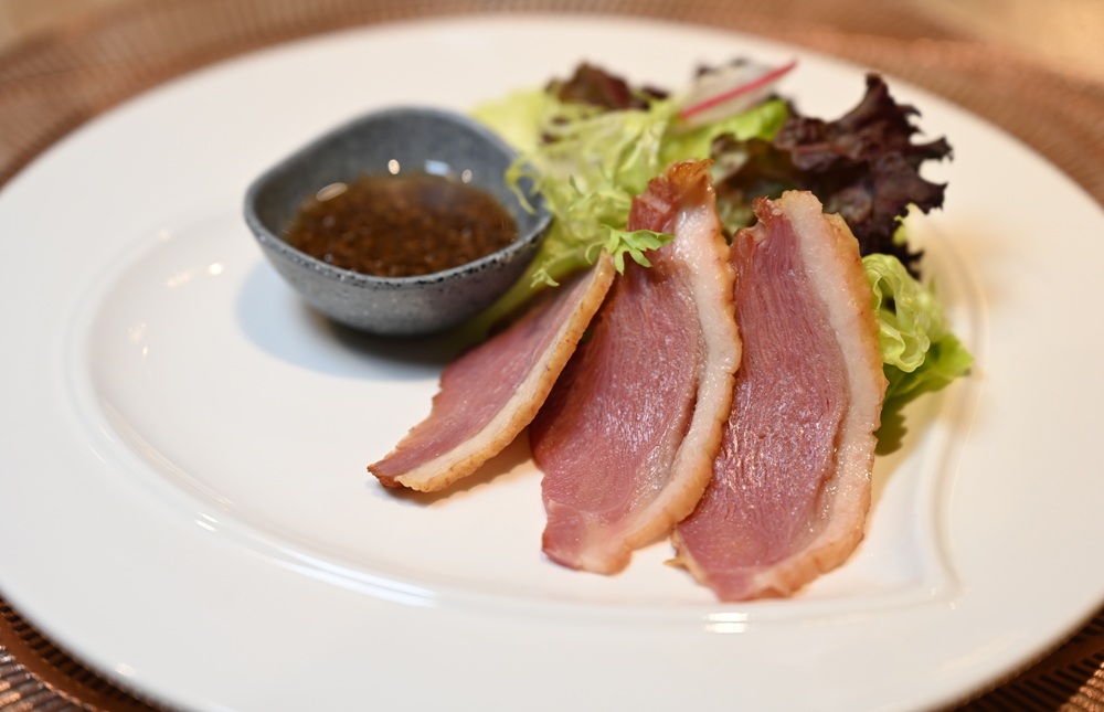 一旁搭配芥末籽醬,微微的辛香提升鴨胸的鮮嫩口感,層次更加豐富。