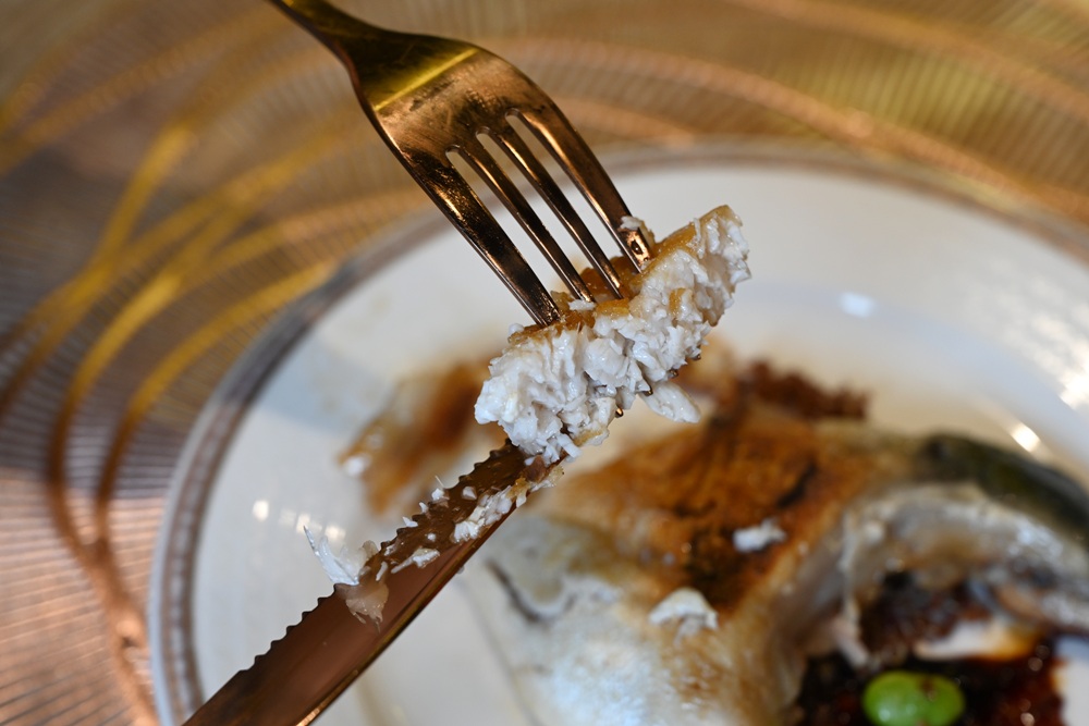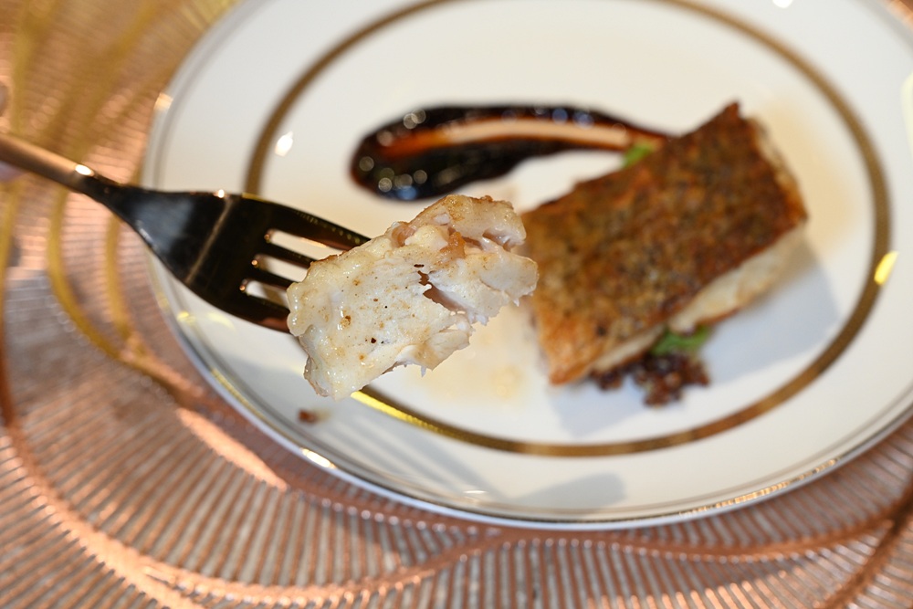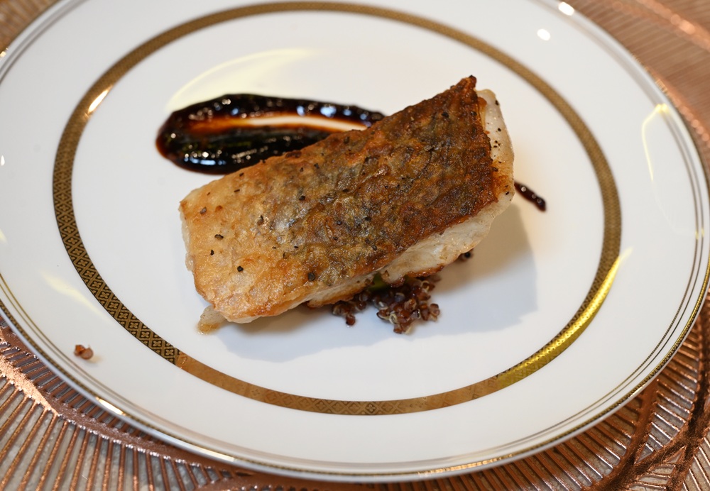 海鱸魚也是搭配照燒醬,底下再鋪上一層紅黎麥,增添咀嚼口感。