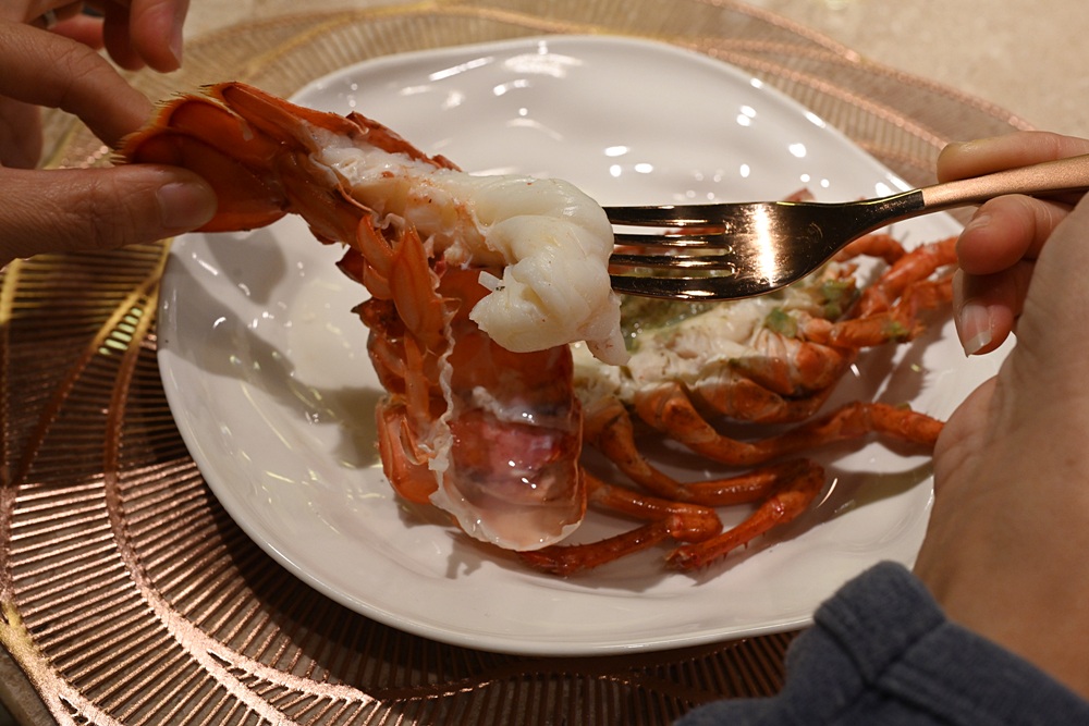 龍蝦是這次主餐的一大亮點,選用新鮮活體龍蝦,皆於用餐前即時處理現做,完整保留食材的鮮度與甜味,每一口都能感受到新鮮海味。而且每份套餐皆可吃到1/2尾活龍蝦,超享受的。