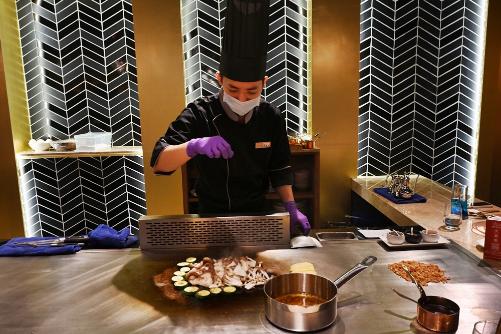 鐵板燒吧檯設計俐落大器,座位間距寬敞舒適,不會有擁擠感,可以近距離欣賞主廚料理的每個細節,從食材處理到上桌都充滿儀式感。無論是情侶約會、朋友聚餐,或是商務用餐與慶生聚會,都能在這樣的空間裡,專心享受料理與當下的美好時光。