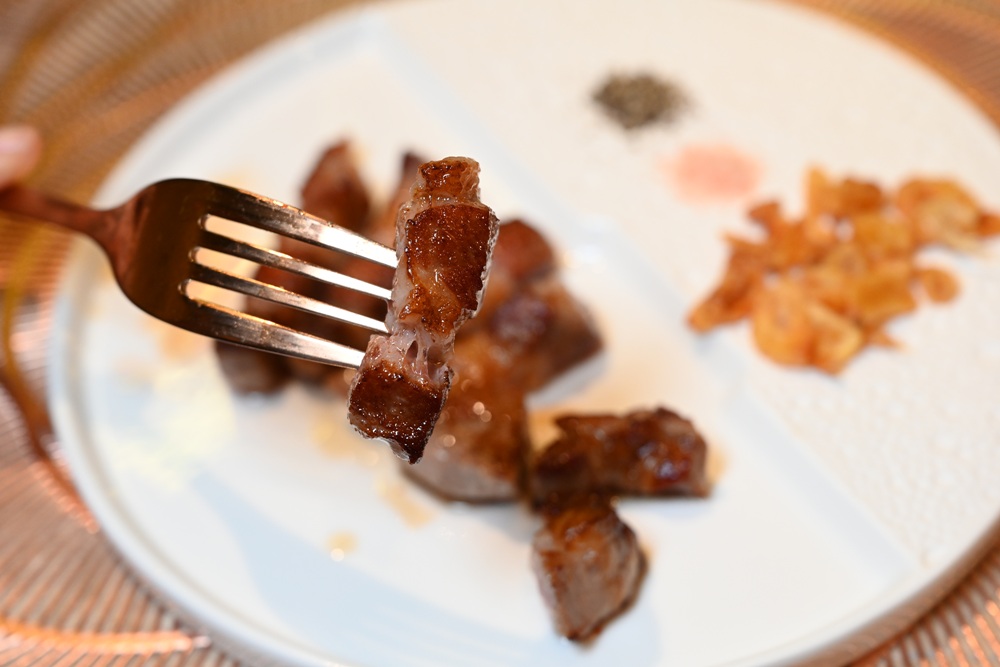 西班牙伊比利豬煎外酥內嫩,肉質細嫩多汁,帶有自然油脂香氣,口感柔嫩卻不膩口,越嚼越香。