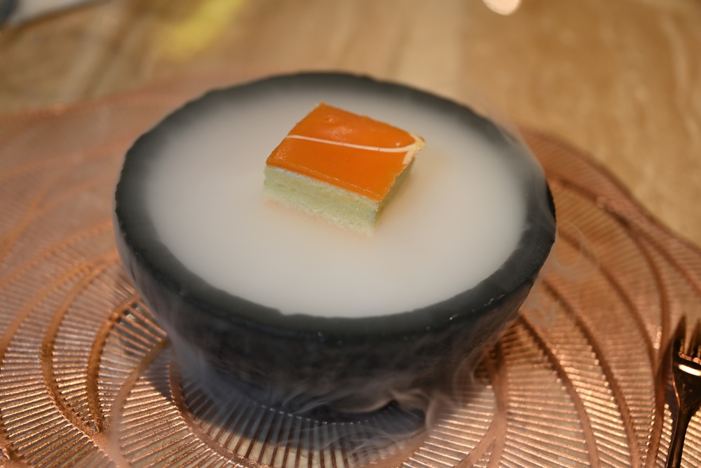 當日壽星來用餐還有壽星專屬驚喜,直接送你一顆浮誇系乾冰蛋糕,一打開整個煙霧繚繞宛如空中之城,儀式感與拍照效果一次到位。