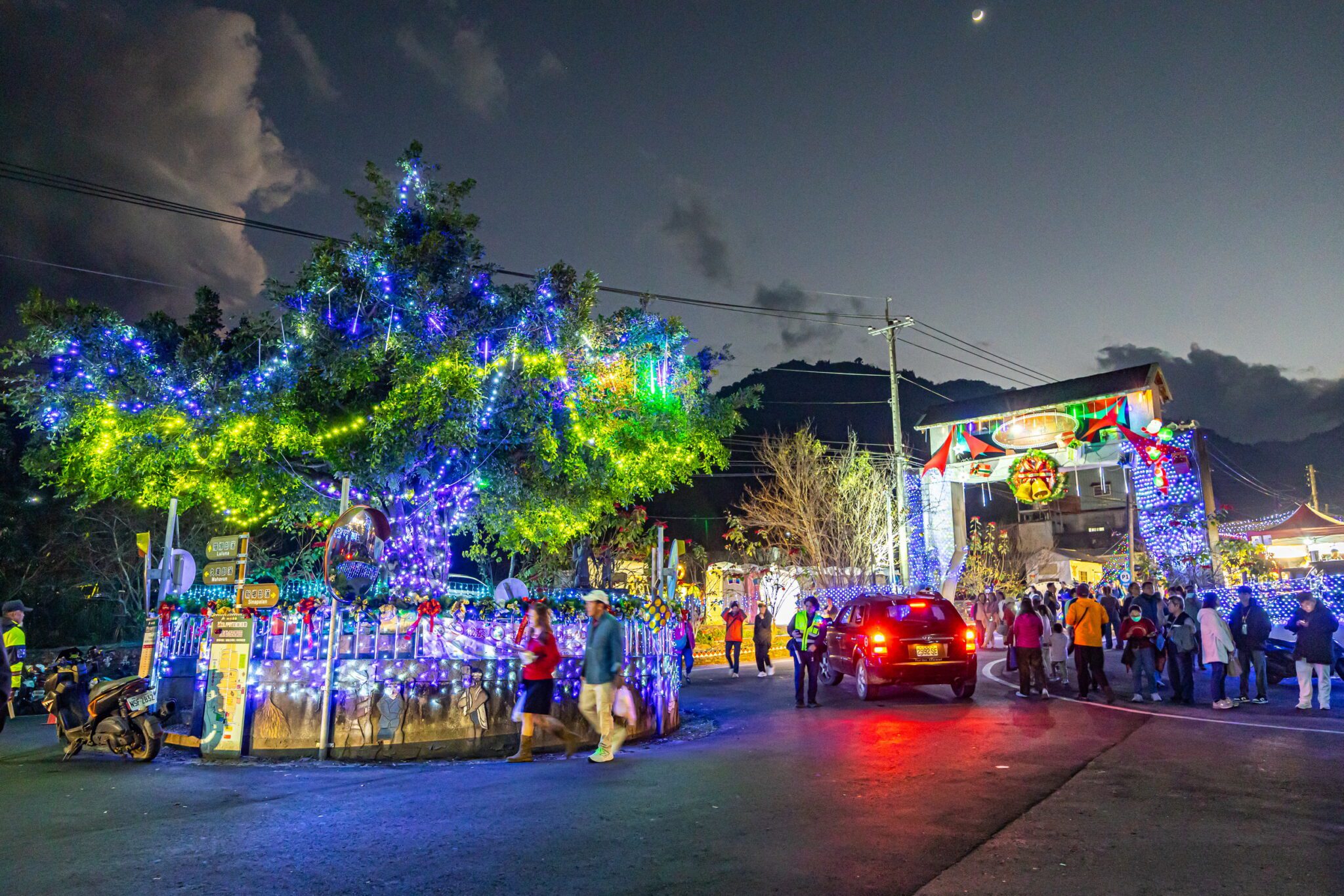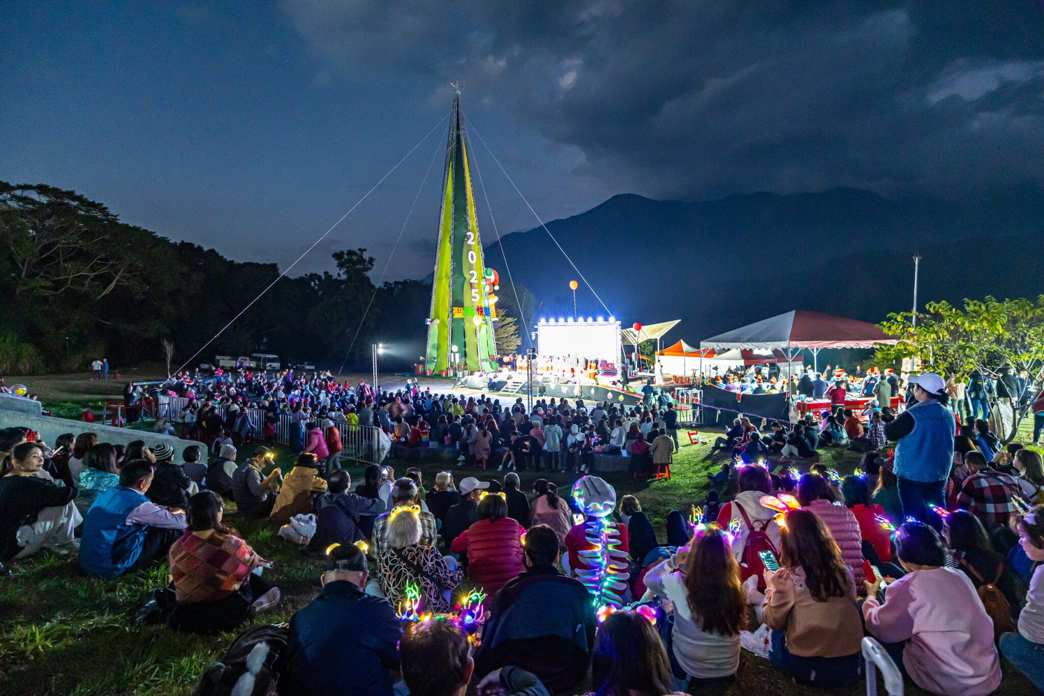 許縣長為信義鄉羅娜聖誕樹點燈 與遊客共度歡樂平安夜 2025南投花卉嘉年華系列活動-信義鄉羅娜聖誕活動,24日晚間在羅娜村羅娜文化景觀園區盛大展開,除有27公尺高的閃亮聖誕樹,還有沿著部落大街打造的燦爛燈海隧道,加上精彩節目連串的天主堂聖誕晚會及火把部落巡禮報佳音等特色活動,吸引大批人潮湧入,縣長許淑華與信義鄉長全志堅帶領貴賓們共同點亮聖誕樹主燈,互相高聲祝福聖誕快樂。