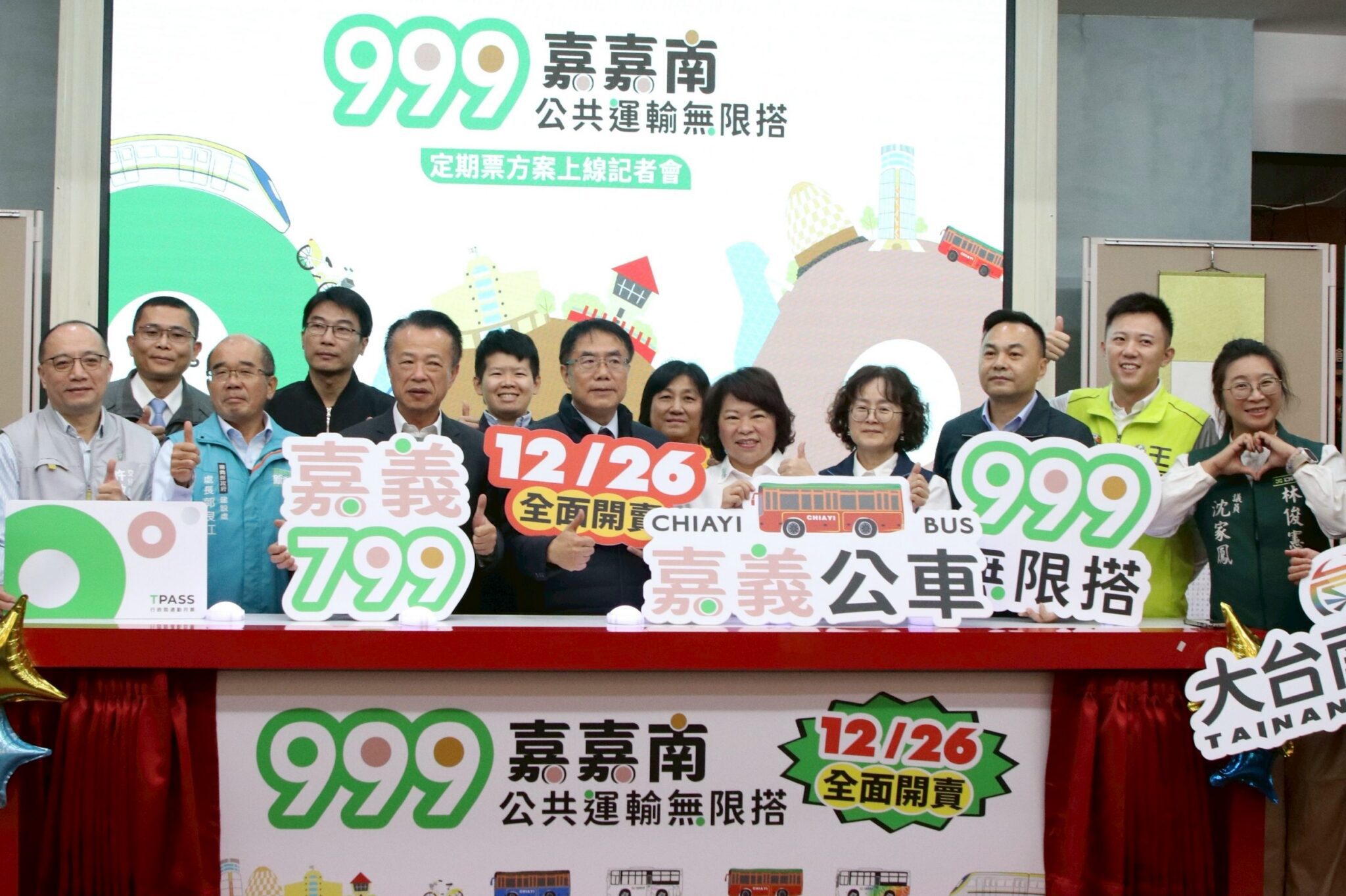 由嘉義市政府、嘉義縣政府及臺南市政府共同推出的嘉嘉南跨城際定期票,今(26)日於臺南市政府舉辦「999 嘉嘉南公共運輸無限搭定期票上線記者會」,由嘉義市長黃敏惠與臺南市長黃偉哲、嘉義縣長翁章梁共同出席宣布啟用。此次推出嘉嘉南 999 元及嘉義延伸 799 元兩種方案,為通勤族提供更便利、實惠的跨縣市移動選擇。