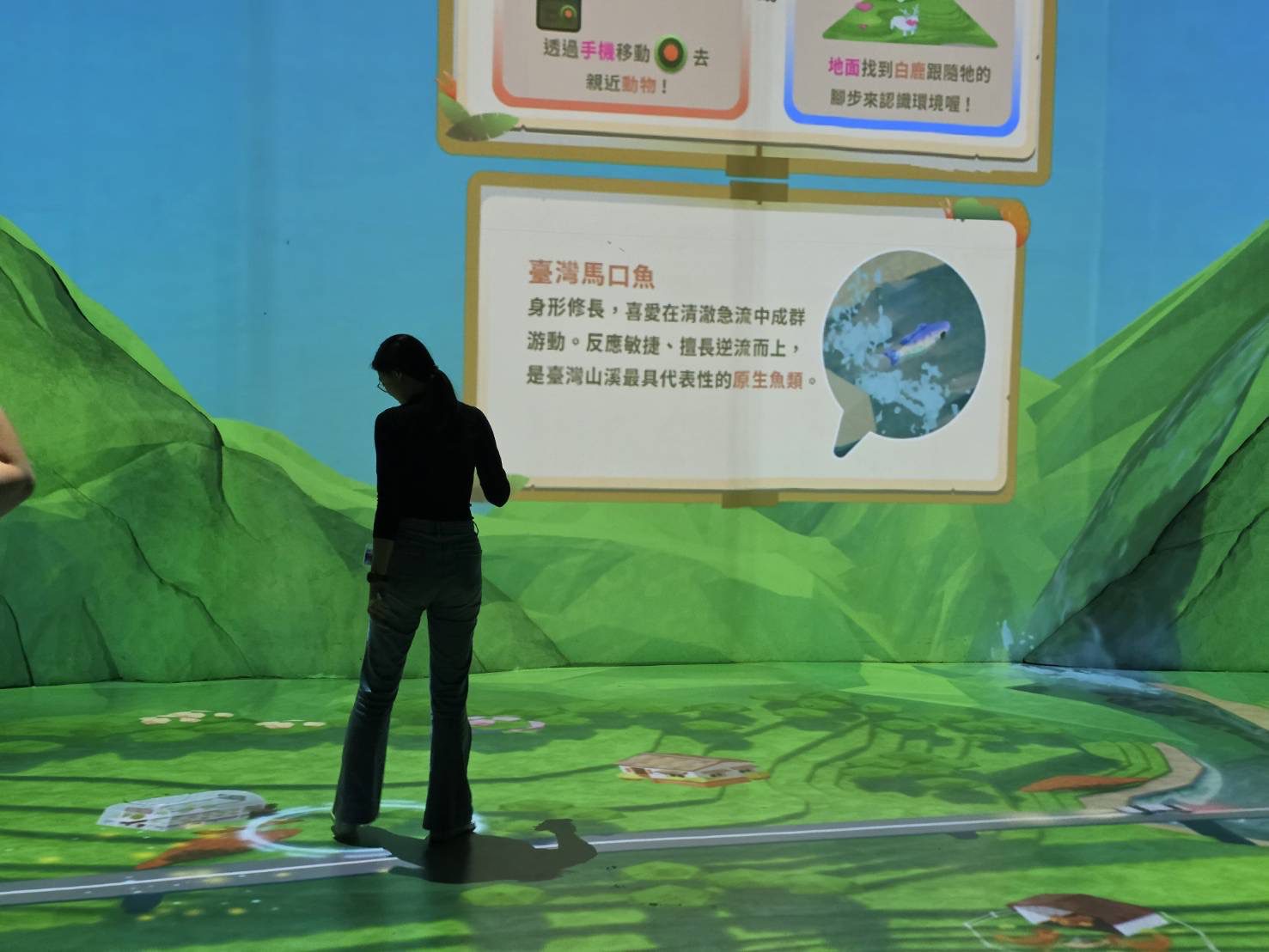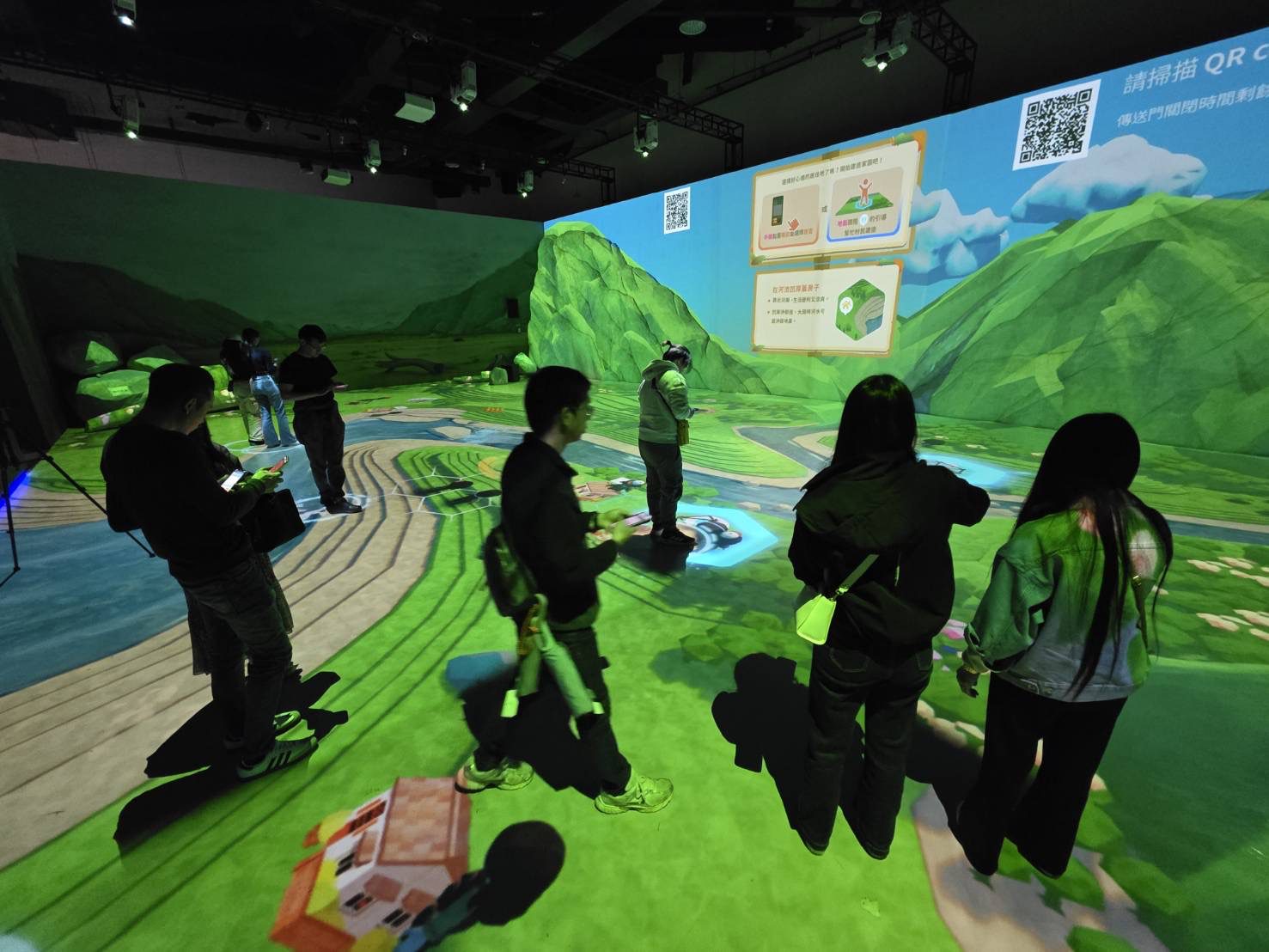 接著進入「選地,建家園」階段,觀眾必須觀察地形條件,思考在河谷、河岸高地或可能發生崩塌的區域建設家園所面臨的風險,理解人類活動與自然環境之間的關聯。這個階段不只是遊戲操作,更是對土地使用與開發思維的反思。