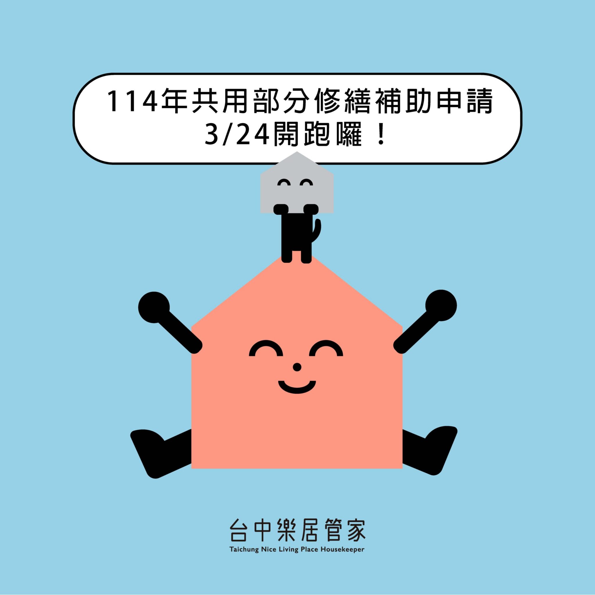 114年度公寓大廈共用部分及約定共用部分維護修繕費用補助將於3月24日起受理申請。台中市住宅發展工程處表示,今年度與去年一樣採線上申辦,只要掌握四步驟包括線上註冊、確認資格、上傳文件及審核撥款,檢附正確且完整資料,即可透過樂居管家一站式入口網,免出門輕鬆完成申請。