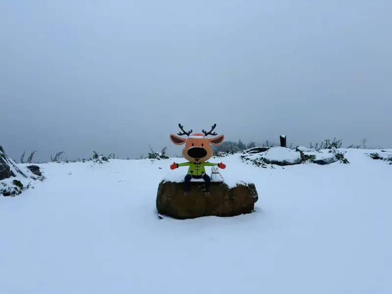 受水氣增加影響,合歡山自今(27)日凌晨4時起持續降雪。截至上午8時,海拔3,150公尺的松雪樓周邊積雪已達9公分,現場氣溫約0.6度。清晨旅客醒來,眼前景色一片銀白,宛如童話世界,不少遊客興奮地在松雪樓前堆起雪人,感受難得的雪景氛圍。