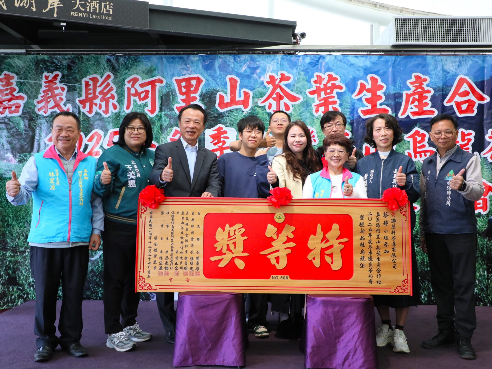 保證責任嘉義縣阿里山茶葉生產合作社今(27)日在番路鄉仁義湖岸大酒店舉辦「2025年冬季台灣高山烏龍茶優良茶頒獎典禮暨展售會」。嘉義縣長翁章梁親自出席並頒發匾額,對獲獎者表示祝賀,並勉勵業者持續努力,保持優異表現。