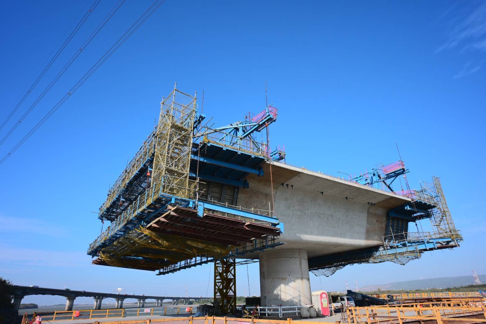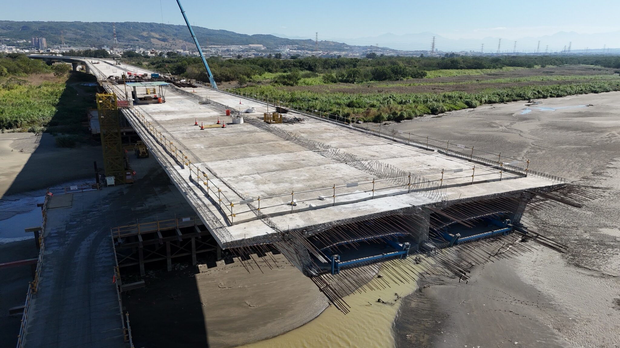 建設局表示,工程自112年1月開工以來,接連遭遇多項管線遷移問題,並需在穿越國道三號的有限空間中施工,加上颱風與豪雨多次來襲,施工環境相當嚴峻;不過在工程團隊持續調整工法、全力推進下,目前已完成30座橋墩中的27座,橋面推進長度達1,122公尺,大肚與和美兩端引道工程也逐步成形,整體進度持續向前。