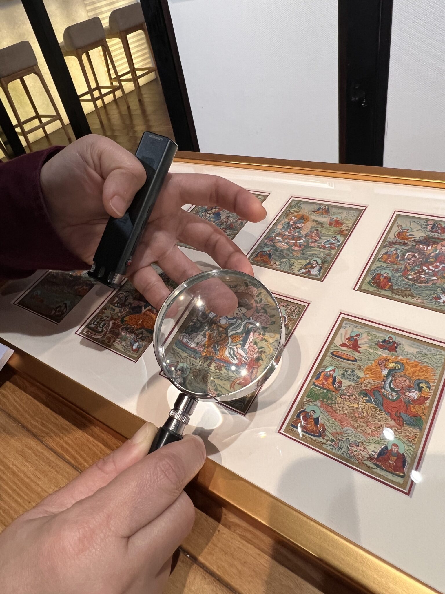 她也提醒,新手可從小幅作品或局部元素入門(例如,觀音手),從預算內作品開始收藏。並分辨「全手繪」與「印刷上色」的不同,避免用錯標準、花錯錢。