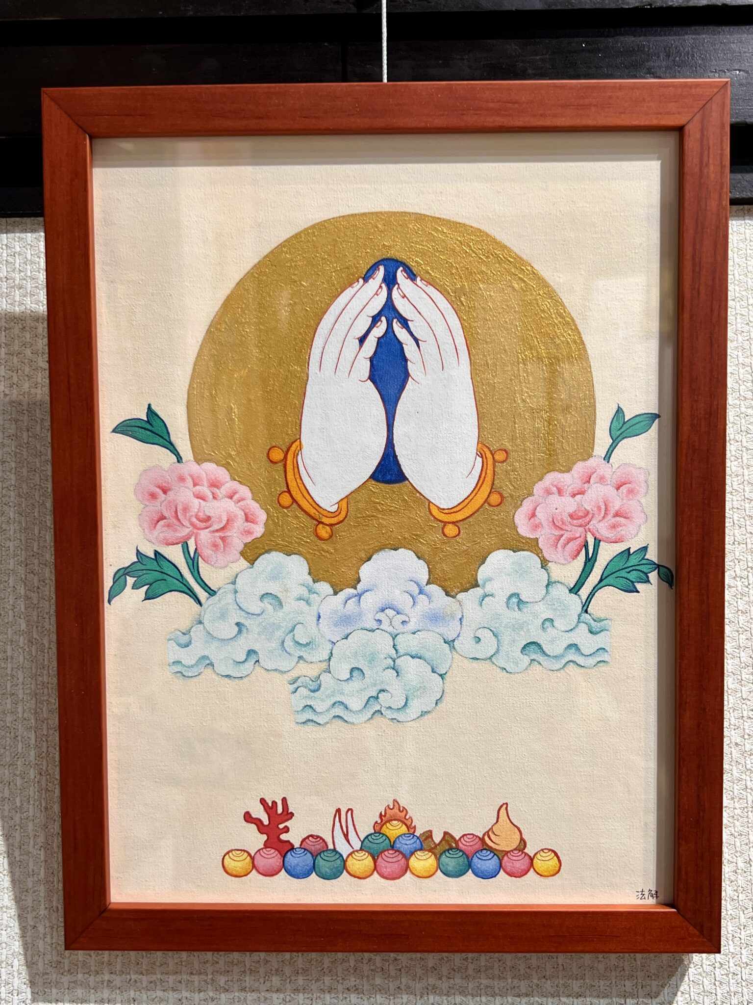 至於神聖的「加持力」,她不走神秘路線:「加持力不在尺寸,也不在價格。」她更在意的是畫者當下的心念—是否專注、是否清淨、是否以恭敬與利他之心完成作品。作品會留下訊息:有的讓人覺得乾淨安定,有的則顯得混濁浮躁;而這種差異,很多時候一般觀眾也能直覺感受到。
