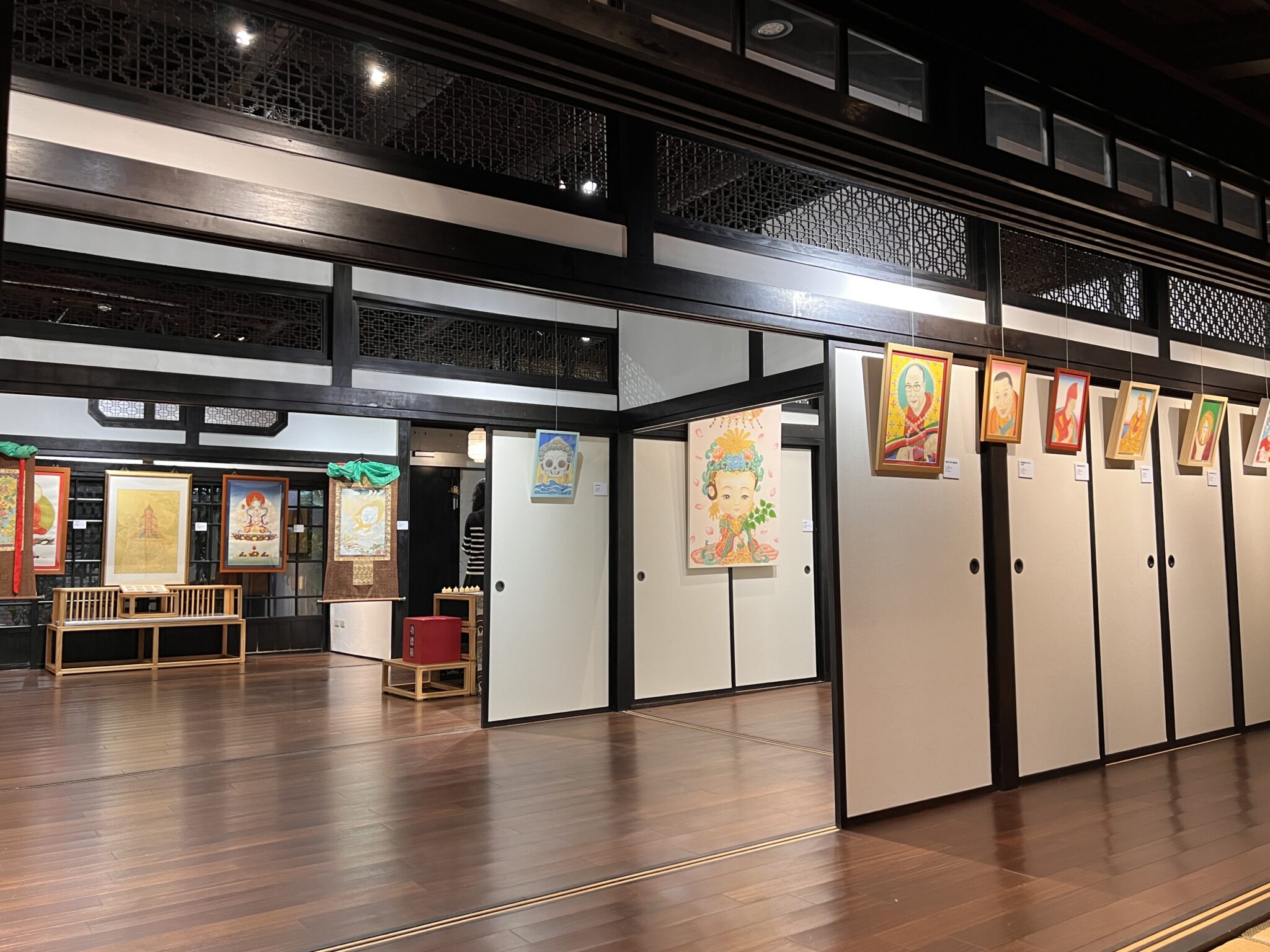 這裡正在展出唐卡畫家、出家師父持明法解的個展《大同世界》。在「國際拍賣會上把唐卡當成重要的歷史文物,而另一頭;在蝦皮、臉書的直播中⋯⋯許多電商平台、網紅把唐卡說的活靈活現,變成招財祈福的護身符」在這兩極拉扯中,「持明法解」師父的作品像一條通往秘境的小路:不急著賣神奇,也不急著解釋靈驗,只把觀者,靜靜地拉回一個根本的問題—唐卡,該從何欣賞?