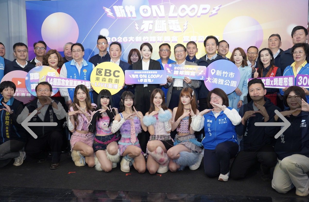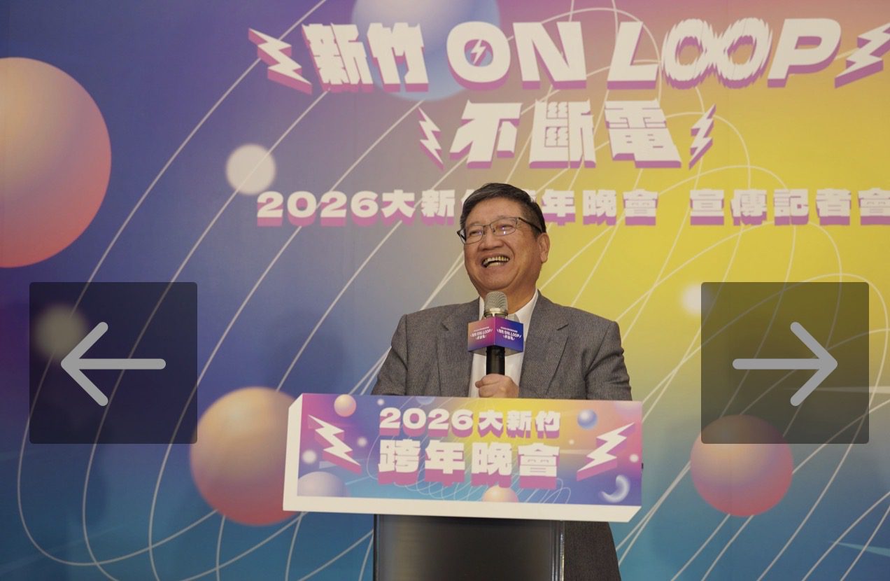 2026大新竹跨年晚會「新竹 ON LOOP 不斷電」將於12月31日晚間6時起,在新竹市大湳雅公園熱鬧登場,新竹市長高虹安、新竹縣長楊文科今(22)日在市府大廳辦理的記者會中,邀請大家相約來新竹,欣賞全台含「金」量最高、重磅卡司堪稱金曲獎同樂會的精彩表演,現場還有美食、遊藝市集、壓軸的300秒倒數煙火秀,一起嗨翻大新竹之夜,迎向充滿希望、光明的2026年!