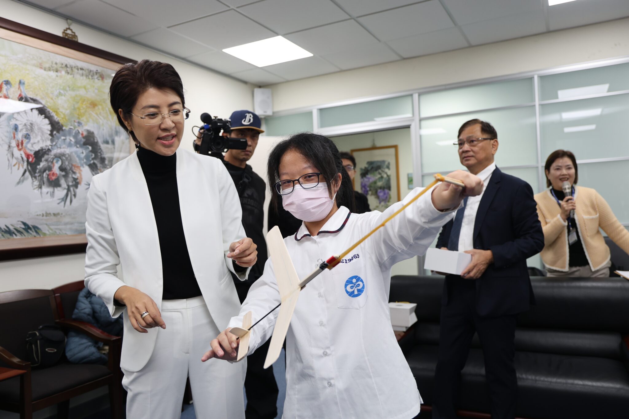 許淑華縣長在逐一聽取學生簡報與示範後深受感動,她表示,看到同學們能將茶渣、檳榔梗等在地農廢變黃金,或是將抽象物理運用在滑翔機與水火箭上,充分體現了南投學子解決問題的能力與創新思維。