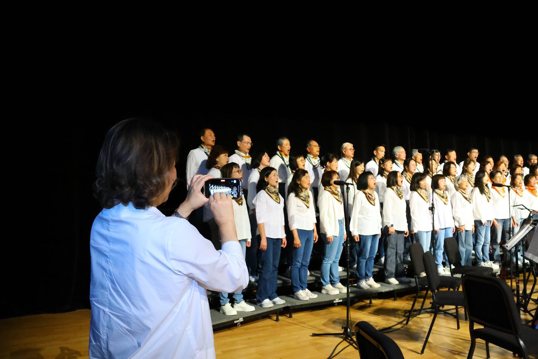 嘉義市長黃敏惠特別在音樂劇開演前,趕抵後台為所有成員送上鼓勵,並與團員合唱《秋蟬》回憶校園民歌的青春記憶黃敏惠表示,「《看我、聽我》校園民歌公益音樂劇」,以所有人都琅琅上口的校園民歌為靈感,譜寫劇情。不僅令人憶起那個淳樸、青春的民歌年代,也呼應了嘉義市鼓勵「樂齡勇壯」,朝向永續發展的政策與願景。感謝本次參與勇壯合唱團的老師及團員們,大家努力實現音樂夢外,更熱心到全市各社區照護機構公益巡迴演出,實現獨樂樂不如眾樂樂精神,以歌聲展現勇壯世代的絕佳風采。