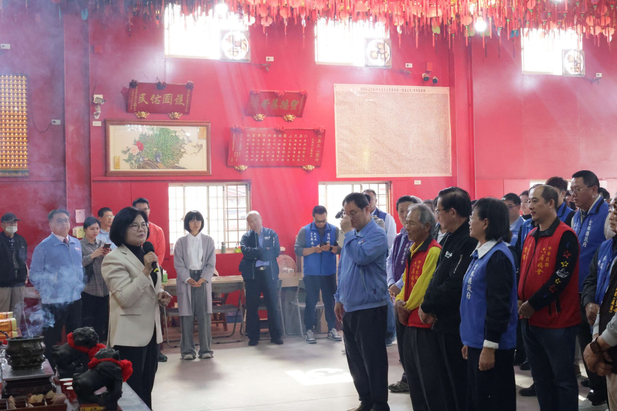 雲林縣政府睽違12年將於明日再度舉辦跨年晚會,縣長張麗善今(12/30)日特別率副縣長謝淑亞、縣政總顧問張清良、秘書長曾元煌、機要秘書黃凱達及各局處首長,前往土庫六房媽紅壇參拜,虔誠祈求跨年活動圓滿順利、民眾平安迎新。