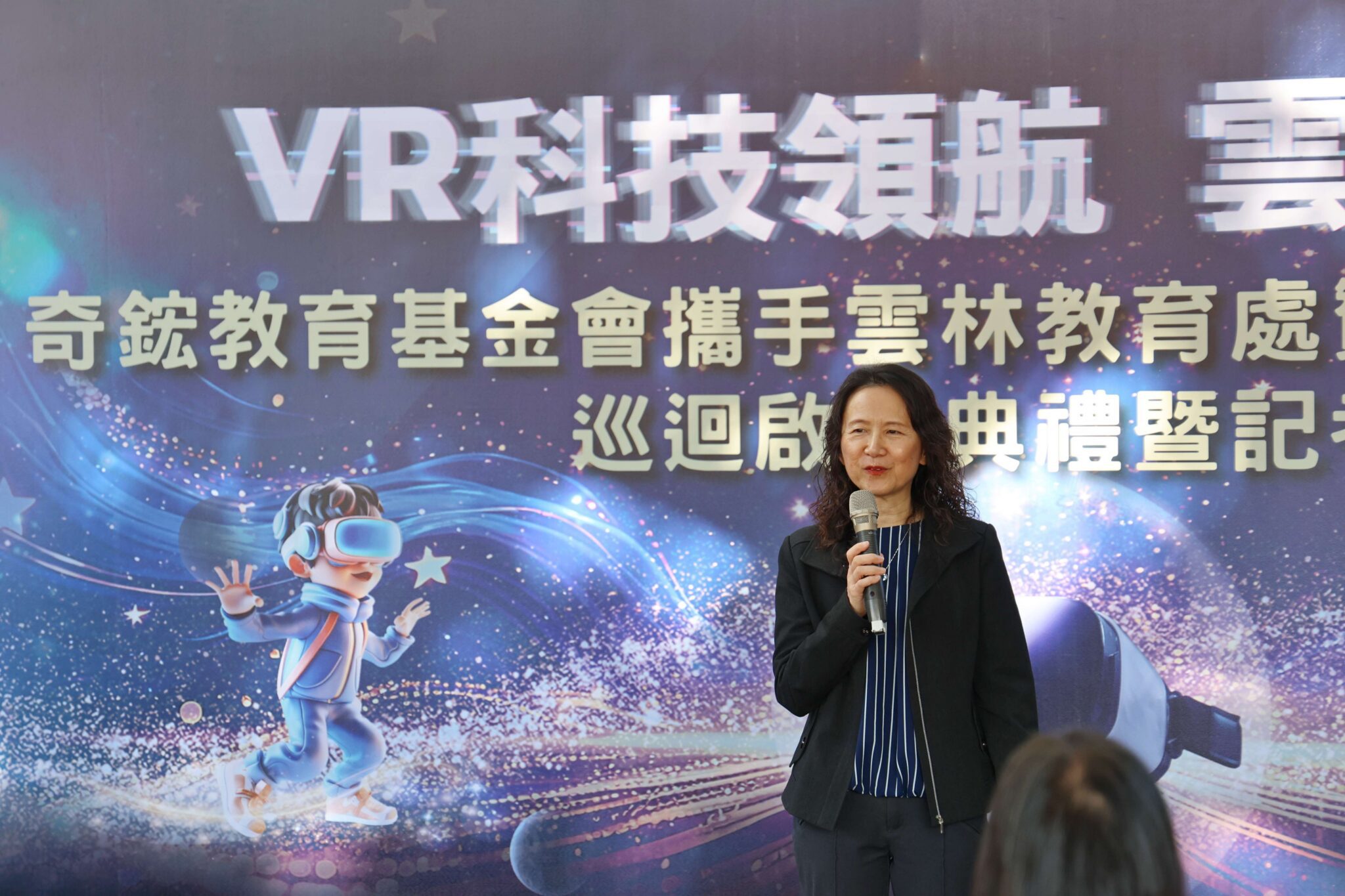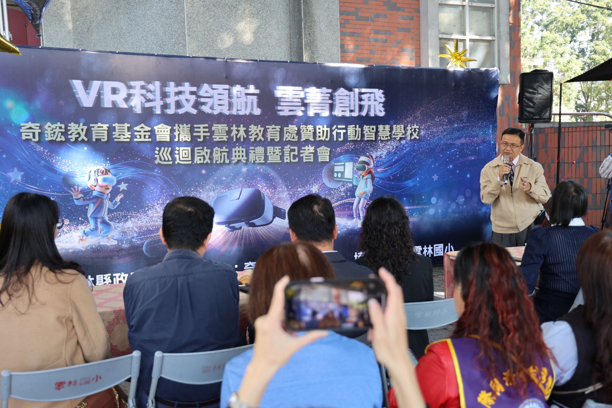 今(30)日於雲林國小舉辦「VR 科技領航 雲菁創飛」— 奇鋐教育基金會攜手雲林縣府「行動智慧學校」巡迴偏鄉九校成果記者會,副縣長謝淑亞特別代表張麗善縣長頒發感謝狀,見證科技教育豐碩成果。