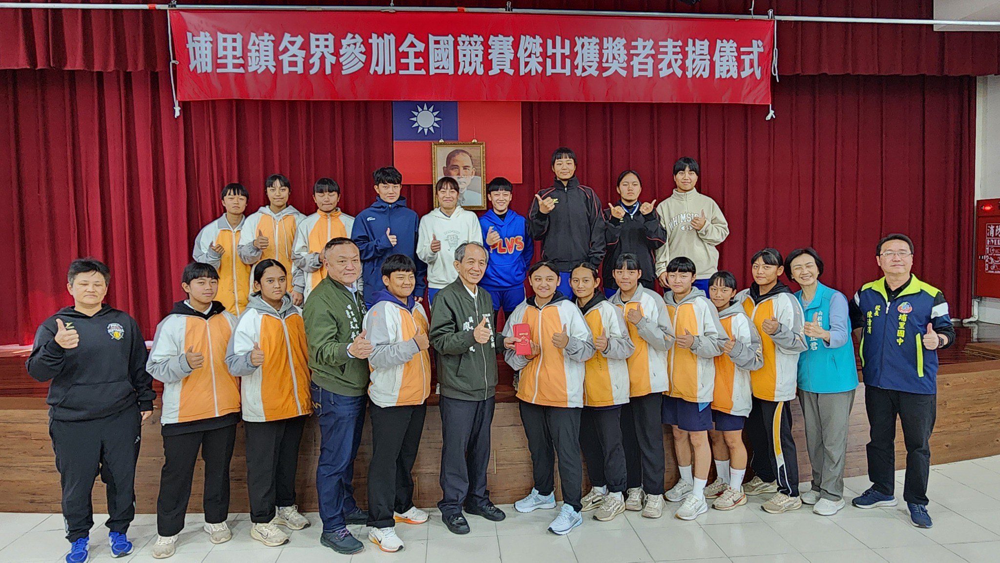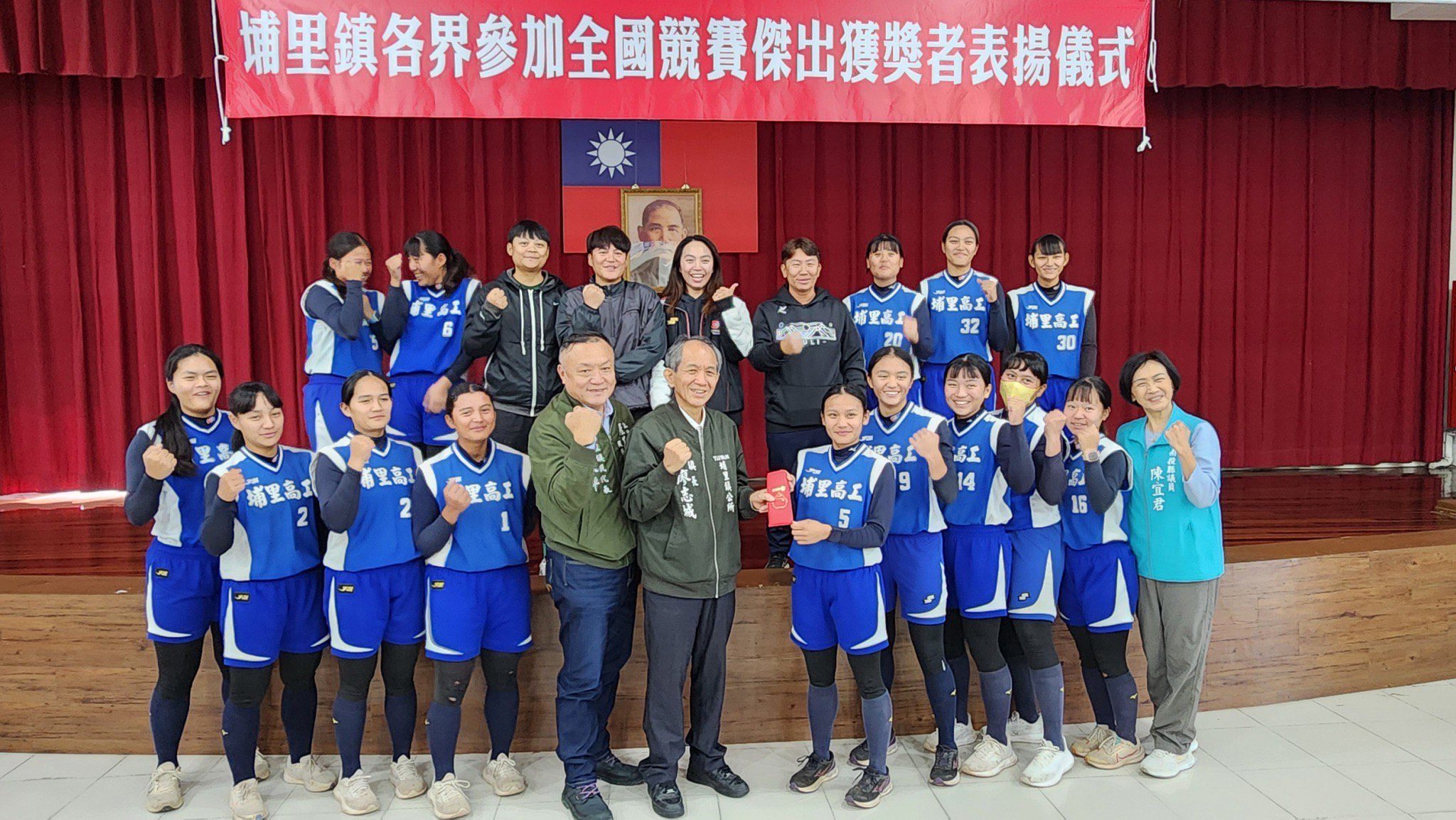 議員陳宜君也強調,選手的好成績是用汗水與淚水換來的,尤其許多人看不到選手訓練過程中的辛苦,要特別感謝鎮公所重視並肯定選手,給師生最大的鼓勵,孩子們更需要被看見,也謝謝家長們長期的陪伴支持,希望孩子們繼續努力,為埔里爭光。