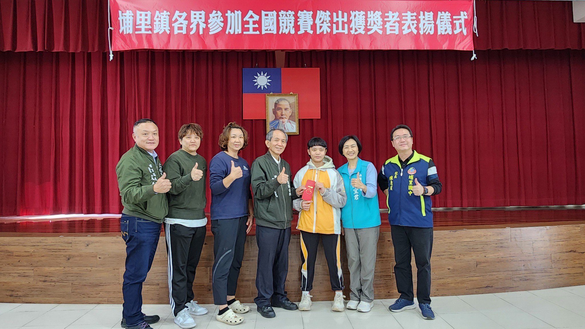 公所今(31)日上午10時於3樓大禮堂表揚118位優秀選手及指導教師、教練,鎮長廖志城親自頒發近40萬元獎金,議員陳宜君、鎮民代表詹文平等人也到場祝賀選手,並感謝指導老師、教練的辛勞;廖志城表示,選手投入訓練的時間長,老師、教練的要求也非常嚴格,大家可說是吃盡苦頭,才能享受競賽佳績的果實,成為「埔里之光」及「南投之光」;上任後大幅提升鎮內社會福利,持續加碼補助鎮內學校、社團赴外參加競賽或活動,至今年底公所總計補助逾500萬元,對於難度更高的全國賽,榮獲前3名的選手以及指導教師、教練,2023年起公所正式編列預算頒發獎金鼓勵,今年選手在女壘、游泳、射箭、男籃、角力、跆拳道、女子棒球等都有精彩表現與傲人成績,期許埔里學子持續多元發展,在不同領域為埔里與國家爭光。