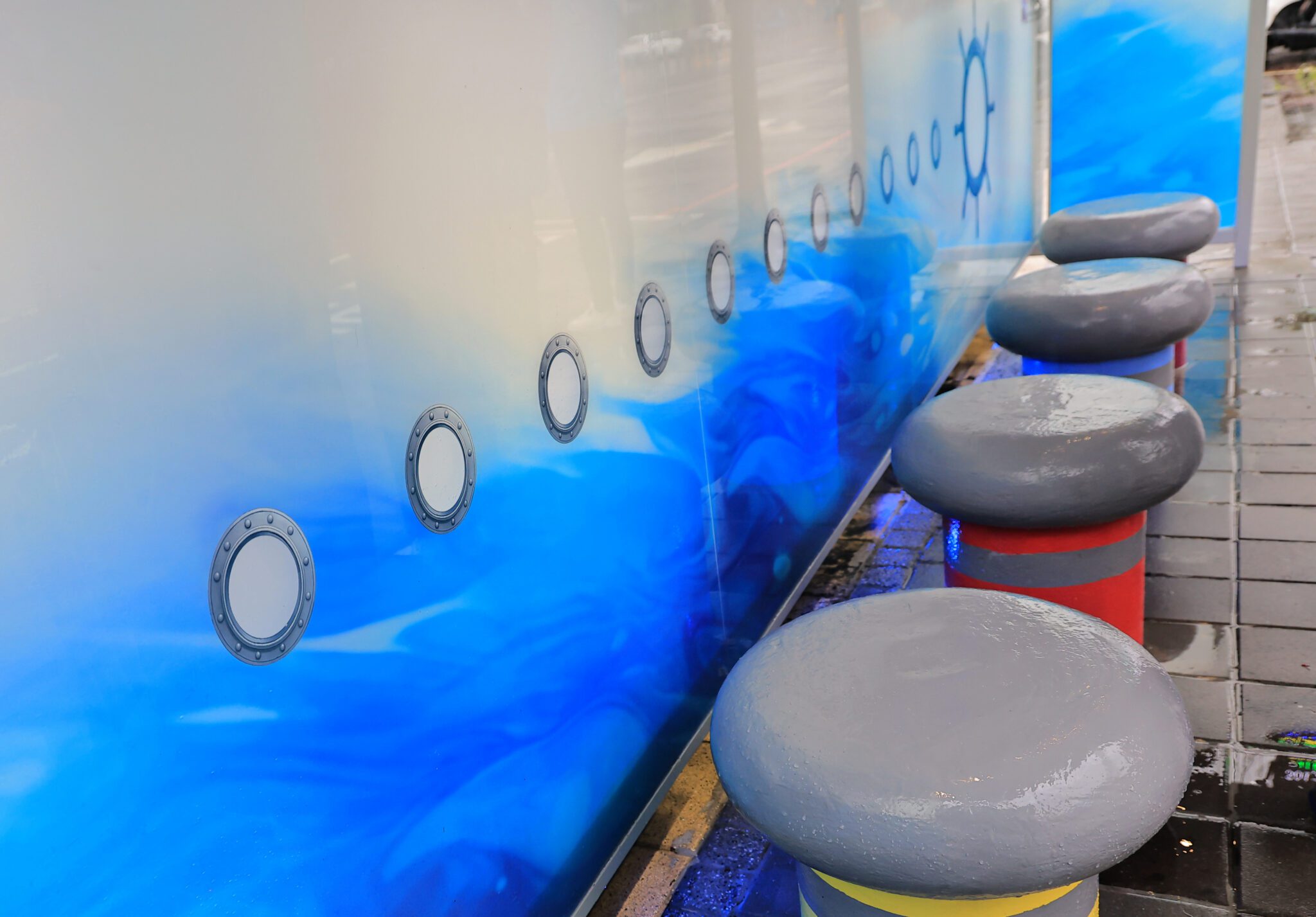 她進一步說明,考量基隆沿海多雨的氣候特性,候車亭在材質選擇上以耐候性與後續維護便利性為優先,採用具抗污特性的膠合安全玻璃,結合船身設計圖面呈現船體意象,並使用比照高鐵車廂外層塗料等級之塗裝,搭配完善照明設計,提升夜間能見度與候車安全,兼顧美觀、實用與耐久性。