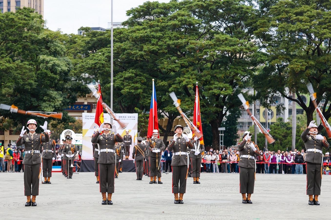 圖説:由高雄女中儀隊表演,揭開升旗典禮序幕。(高市府提供)