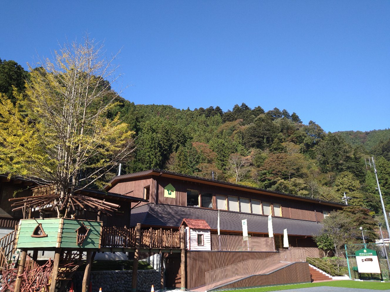 館內約1,000㎡的寬敞空間中,設有檜木蛋型木球填充的木製球池、攀爬設施與滑梯、日本傳統玩具如劍玉、陀螺及積木等,從動態遊戲到訓練專注力的遊具,品類豐富,適合各年齡層一起共遊。館內另附設博物館咖啡廳「里山食堂」,兼具餐飲與休憩功能,在此可盡情放鬆享受遊戲時光。