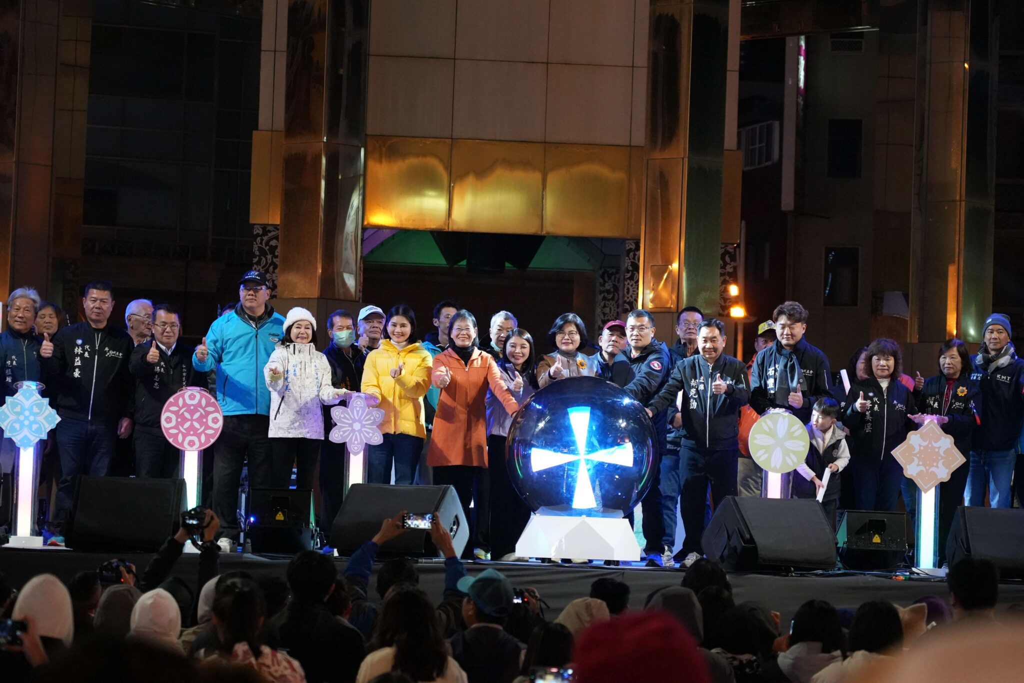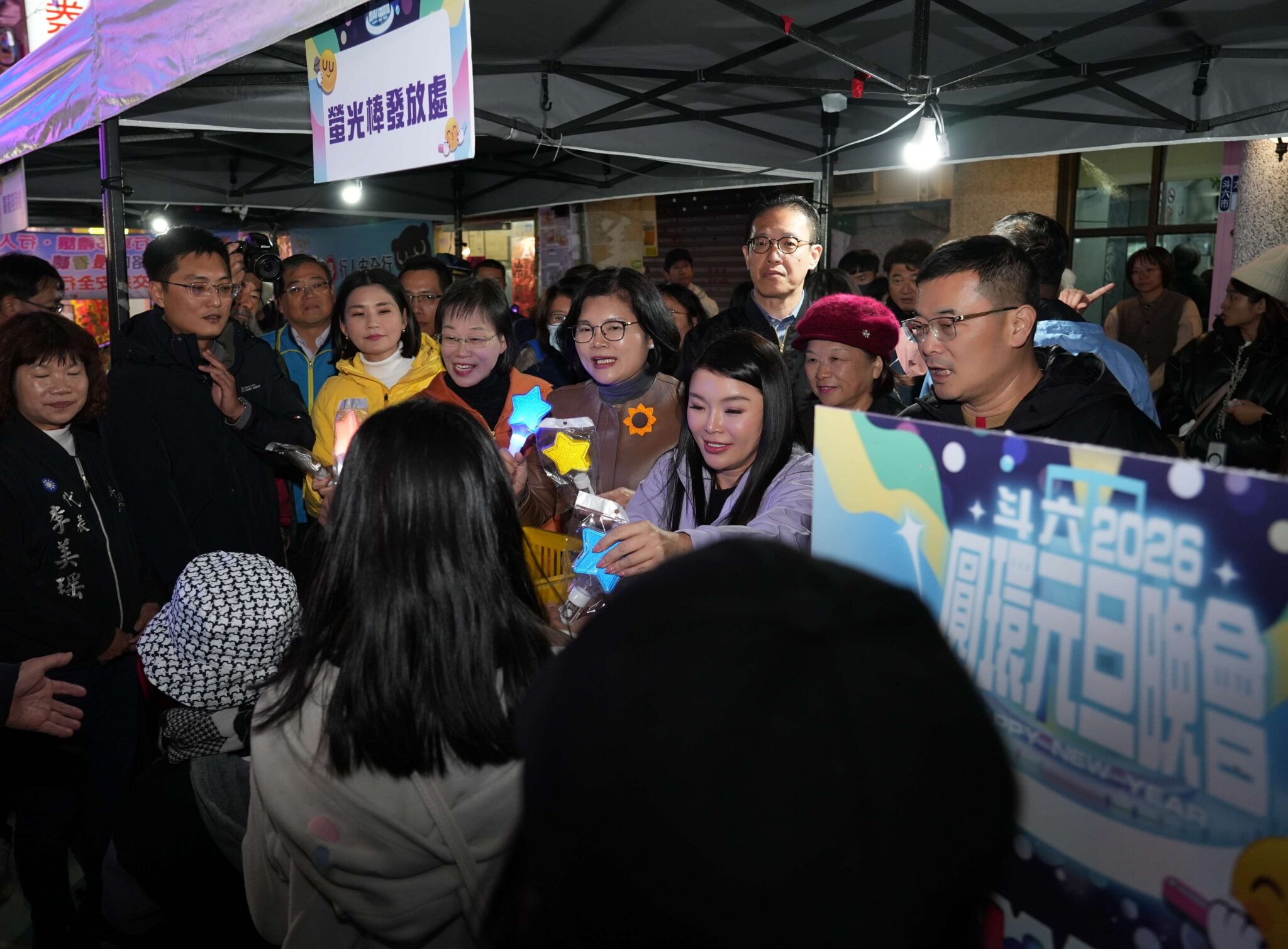 斗六圓環元旦晚會在璀璨燈光與熱情音樂中熱鬧展開。縣長張麗善、立委張嘉郡、副縣長謝淑亞、陳璧君、斗六市長林聖爵、市代會主席胡克勤、副主席黃尤美及多位市民代表、里長到場共襄盛舉,祝福現場民眾新年快樂。