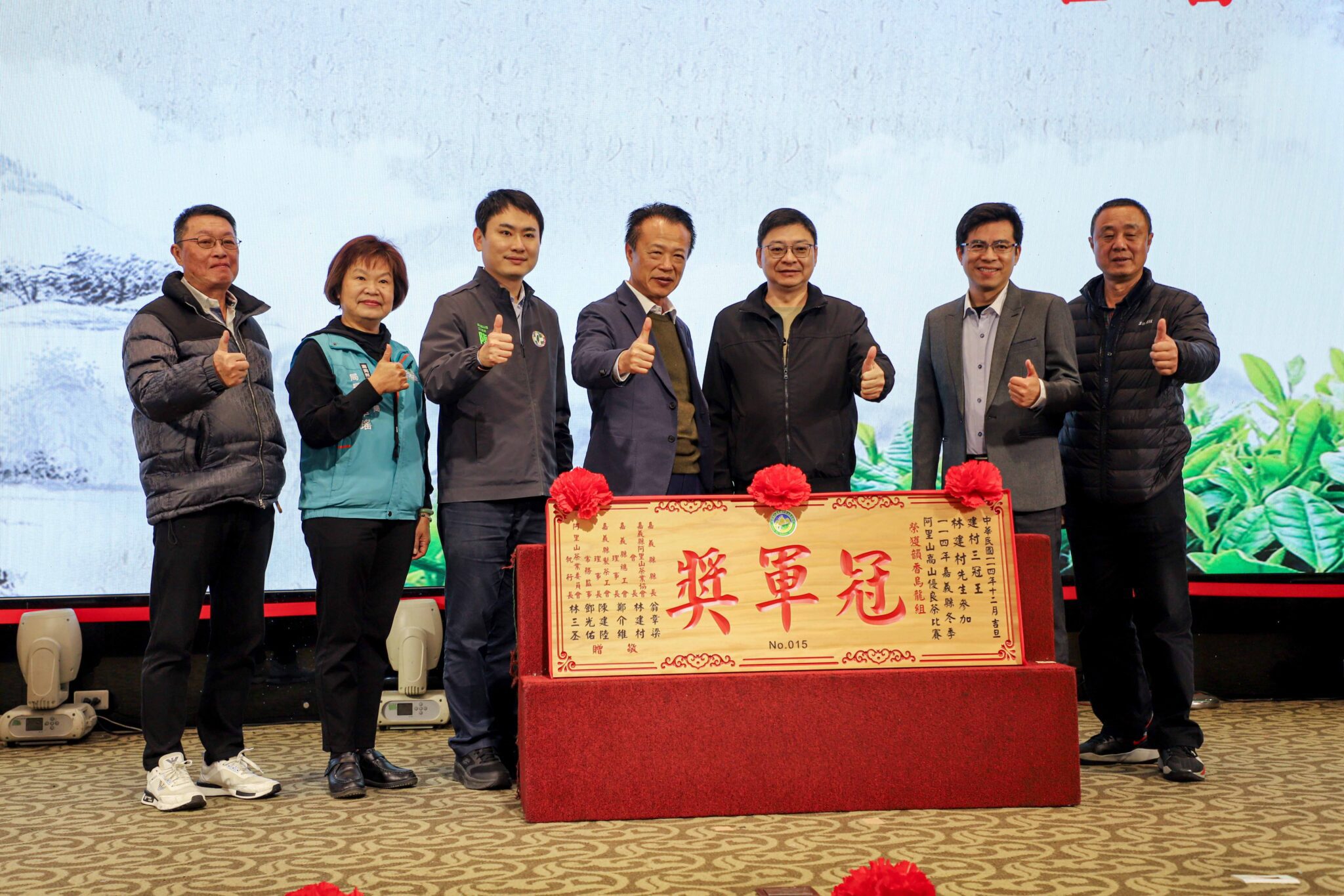 嘉義縣長翁章梁、立法委員蔡易餘、陳冠廷及嘉義縣總工會理事長鄭介維等人親臨現場,由翁章梁向獲獎茶農頒發匾額,表達祝賀與肯定。