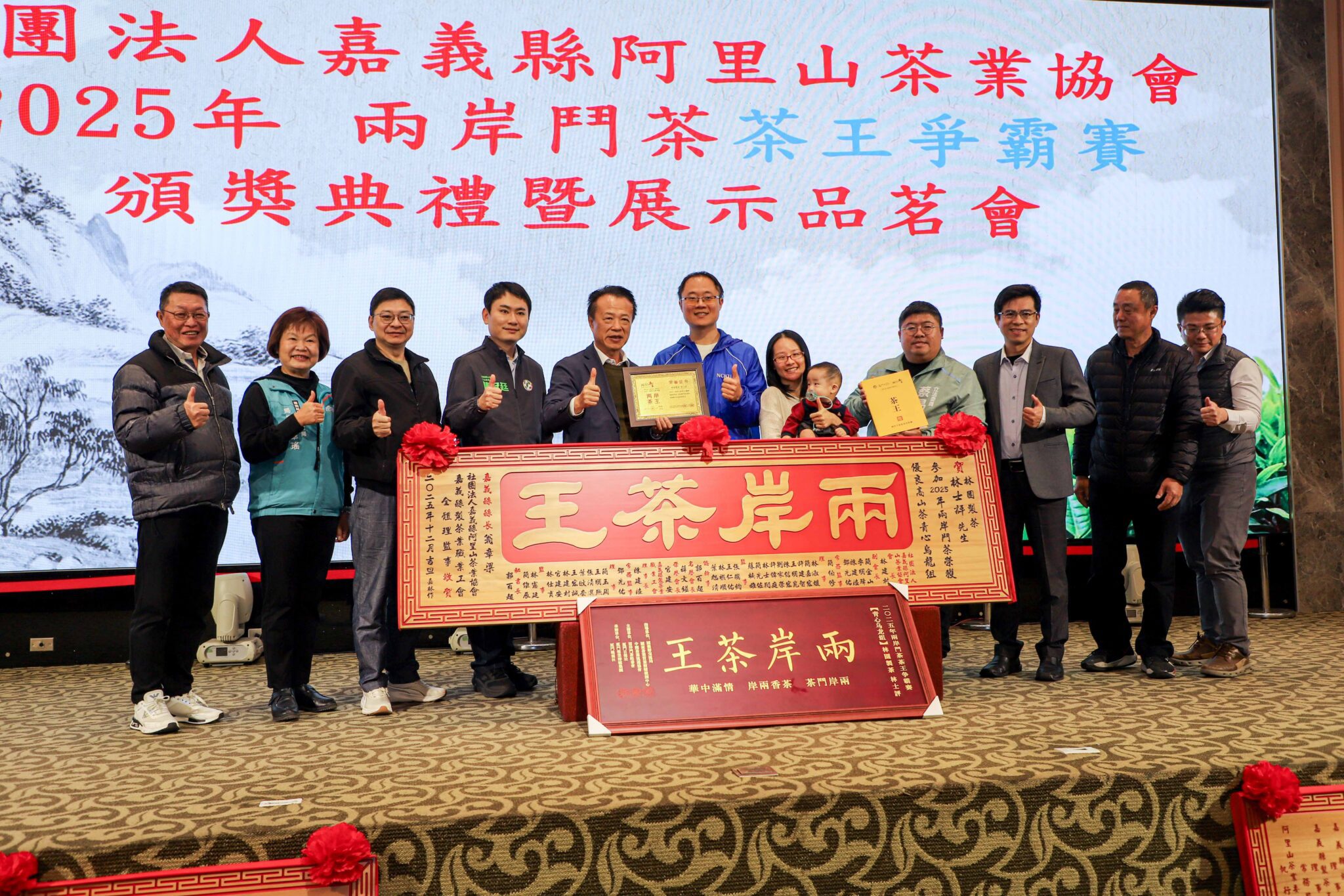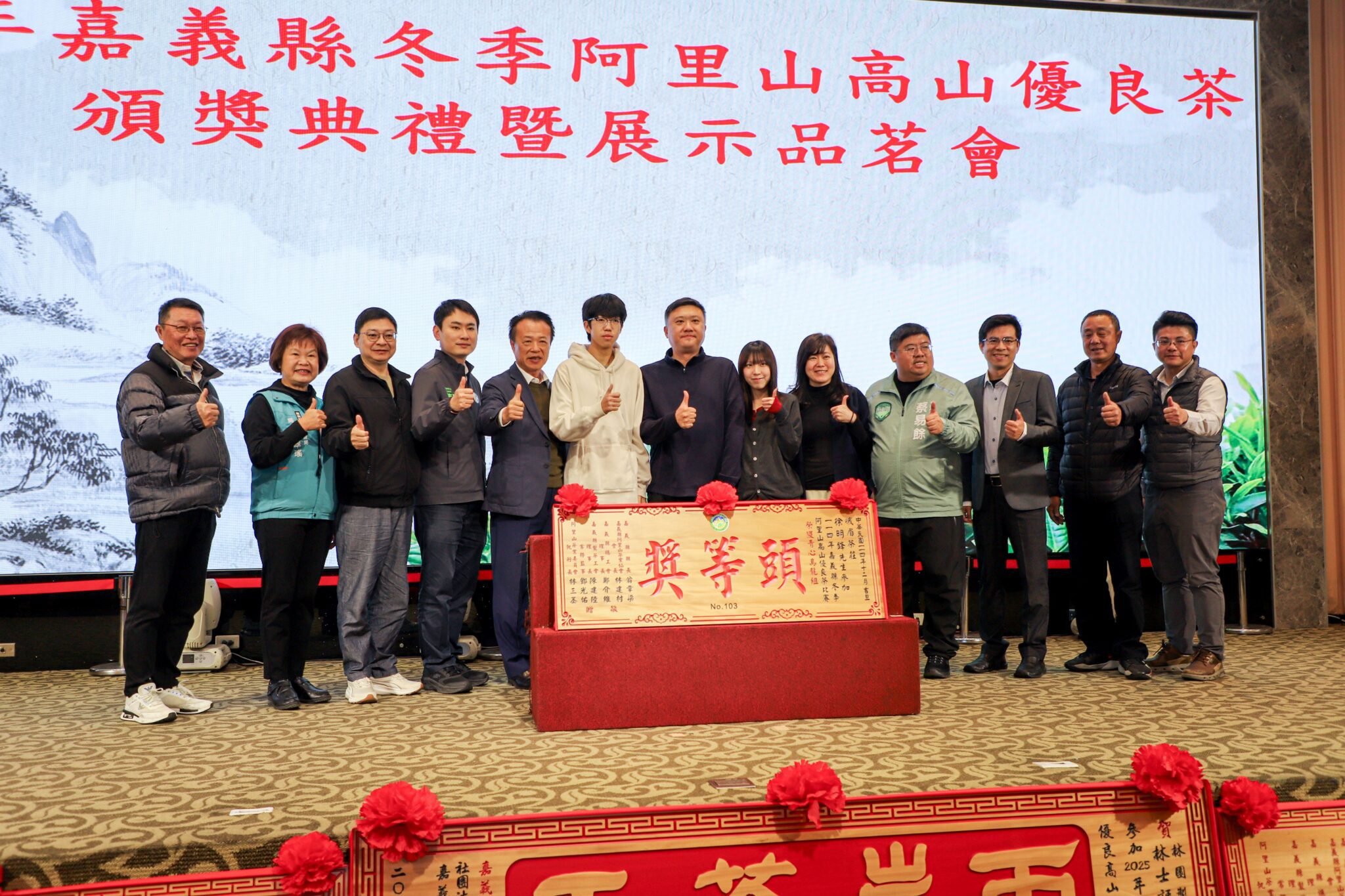 嘉義縣阿里山茶業協會、嘉義縣總工會及中華民國製茶工會全國聯合會共同主辦「114年嘉義縣冬季阿里山高山優良茶品茗展示會暨頒獎典禮」,今3日隆重舉行頒獎典禮。