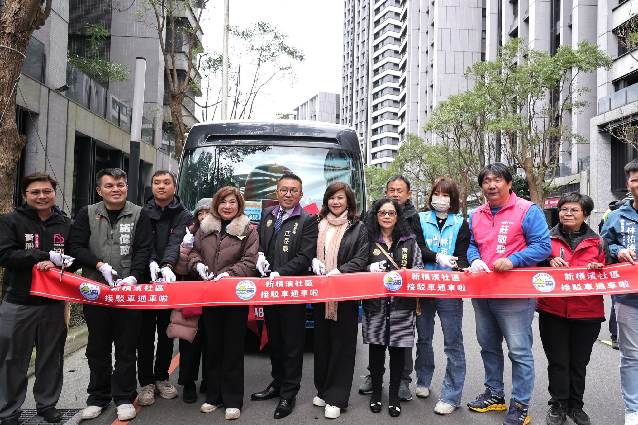 新橫濱社區聯合協會今(3)日舉辦社區接駁車通車典禮,多位市議員到場祝賀,基隆市副市長邱佩琳代表市長謝國樑出席,與社區居民及各界嘉賓共同見證這項提升交通便利的重要里程碑。邱佩琳表示,新橫濱社區接駁車由原本單一路線調整為「市區線」及「南港線」兩條路線,最早班次清晨6點30分發車、最晚晚間10點自南港返回基隆,並可每日分擔約1,300人次交通需求,對社區交通改善助益可貴。
