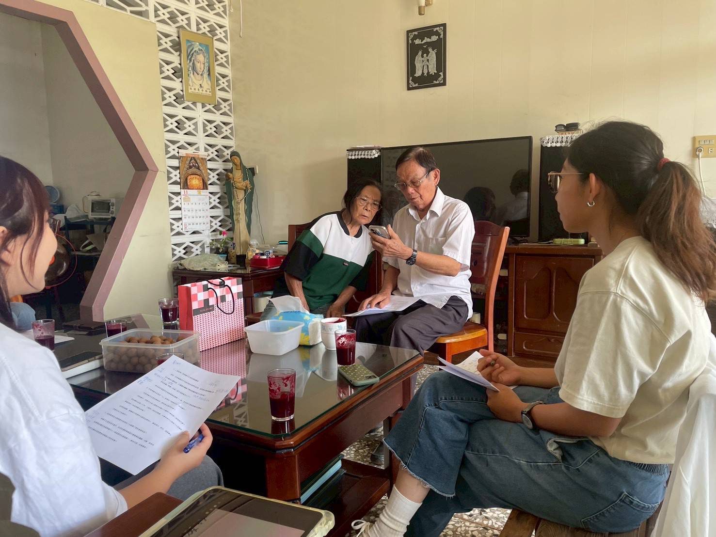 在訪談現場,學生以提綱與筆記逐一確認年代、人物與事件脈絡;長輩則以口述補足歷史縫隙。那是一種很樸素、卻很有力量的互信:年輕人願意聽,長輩願意說,於是失散的記憶開始回到同一張桌子上。