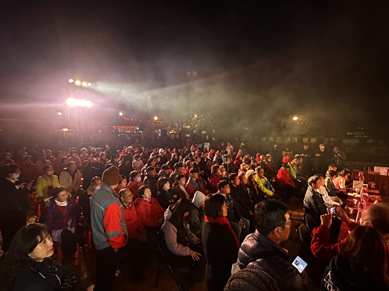 市府客委會主委江俊龍代表市長盧秀燕向鄉親問候新年平安。他表示,歲末年終之際,客家鄉親以「收冬戲」酬神、祈福、謝天,象徵一年辛勞的圓滿與對來年的祝願,不僅是重要的歲時民俗,更是凝聚客庄情感、傳承客家戲曲文化的重要平台。感謝古主委將收冬戲帶到台中,也肯定鄭榮興校長親率金滿圓戲劇團演出,演員訓練扎實、功夫深厚,展現高水準演出。適逢農曆十五,月圓人團圓,鄉親齊聚賞月看戲,格外幸福,也祝福大家新的一年馬到成功、萬事順利。