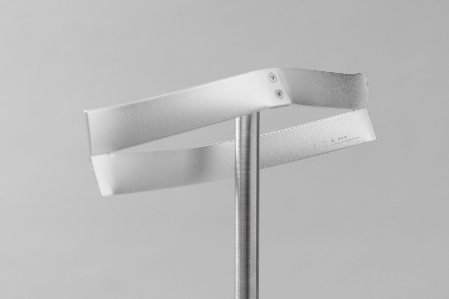 為了紀念綠美圖自規劃到開館,歷時15年的重要里程碑,兩館特別邀請曾獲多項設計大獎,並受邀於國內外展覽發表作品的工業設計師楊水源合作,推出開館限量紀念商品「birdi」。設計取材自擴張網建築材料,延續建築輕盈、通透與流動的語彙,轉化為平衡擺飾,造型如同停棲平衡的鳥,線條柔和延展;金屬材質在穿透光線的同時保留加工痕跡,使物件於不同角度呈現細緻且動態的光影變化,象徵藝術與知識共融的場館精神。