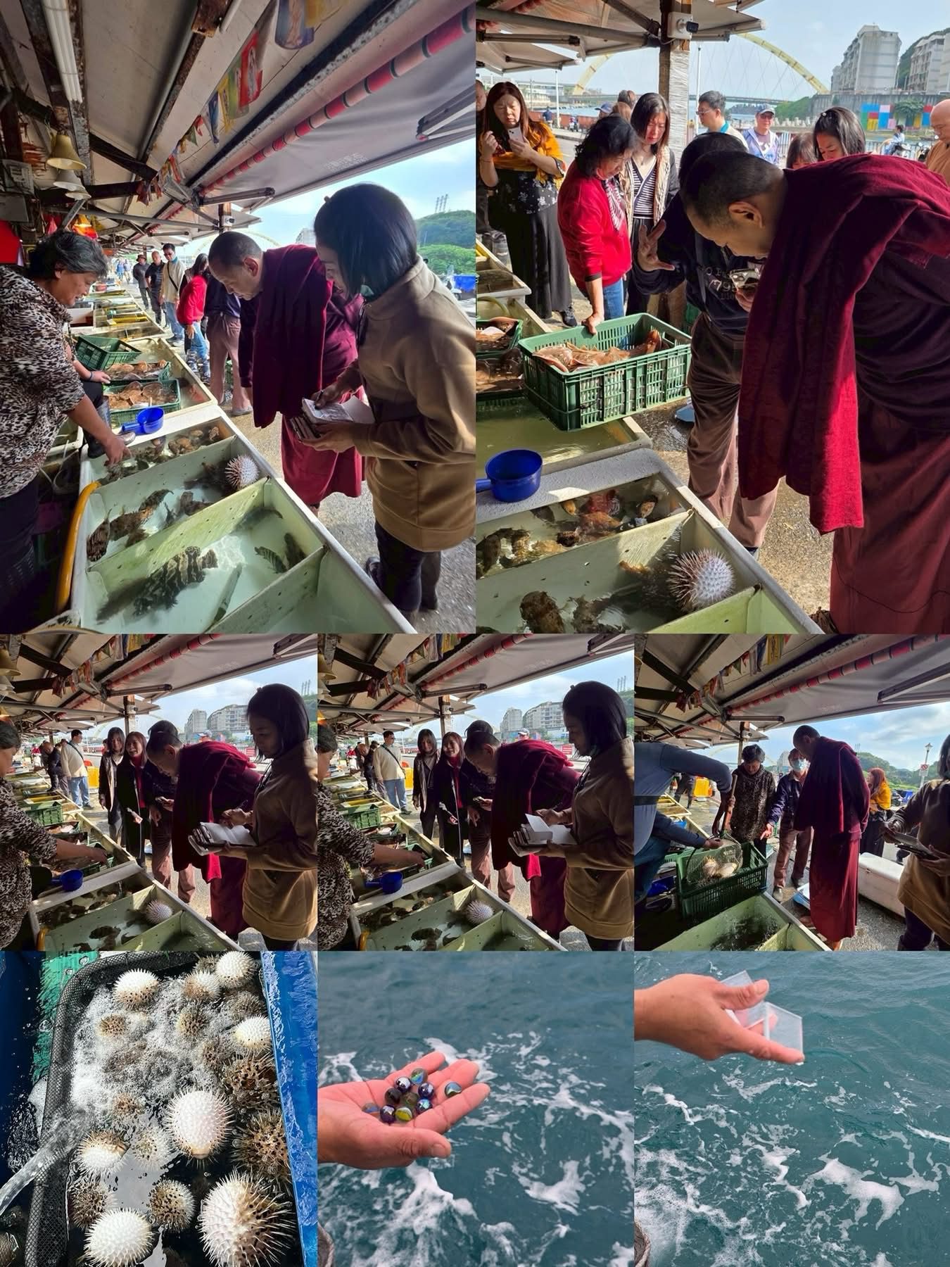 放生,並非形式上的善行展示,而是一種「不忍眾生受苦」的即刻回應。被釋放的生命,原本即將面臨市場、餐館或宰殺的終點;此刻,重回海洋,也重回屬於牠們的自然節奏。仁波切反覆提醒: