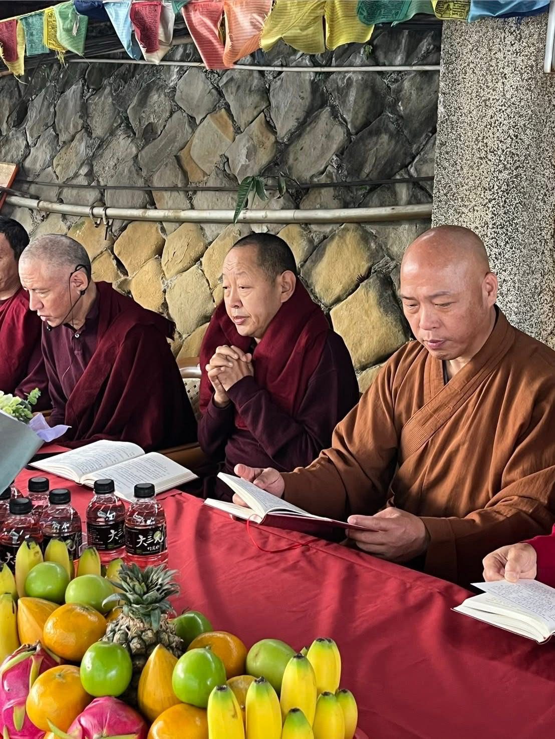 在寒冷的天氣中,來自台東的釋常定法師與釋湛明法師不辭路遠前來賀壽,眾人同聚一堂,向阿彌陀佛與仁波切獻上最真誠的祝福。沒有喧鬧,只有安靜而深長的願力流動。