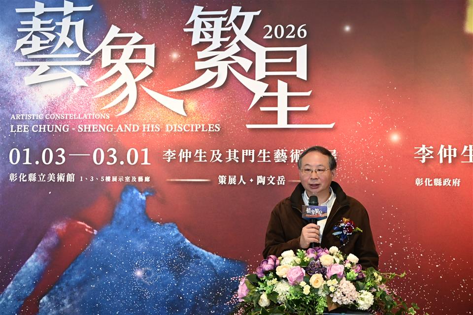 「藝象繁星-李仲生及其門生藝術特展」即日起至今(115)年3月1日在縣立美術館盛大展出。今(6)日上午舉行開幕記者會,彰化縣長王惠美、國立臺灣美術館汪佳政副館長、財團法人李仲生現代繪畫文教基金會董事長黃步青、策展人陶文岳教授、參展藝術家等人與會。王縣長表示,本展覽除展出已逝藝術家李仲生油畫、水彩、素描與珍稀手稿等共42件作品外,更邀請47位門生每人提供1件作品參展,全展共計89件作品,呈現李氏藝術在不同時期的演化,更於展場重現「一對一咖啡館教學」情境,使民眾得以貼近李仲生與弟子互動的精神風貌。