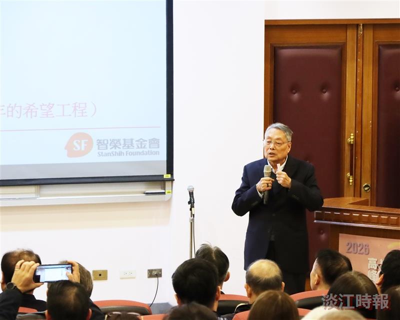 綜合報導/面對全球經貿秩序快速變動與AI科技迭代加速,淡江大學12月27日下午在台北校園舉辦「2026變局與佈局高峰論壇」,由淡江大學菁英會指導,推廣教育處「觀勢匯天下」課程與中華文化創意產業發展協會共同主辦,淡江大學EMBA聯合同學會、狼窩創業加速器、人才天下及雷普科技協辦,以「產業升級、經濟佈局與全球資本新趨勢」為主題,匯聚多位產學界重量級領袖,從宏觀趨勢與實務經驗出發,多面向探討企業如何面對高度不確定的環境,在數位轉型與全球市場趨勢中掌握關鍵佈局。
