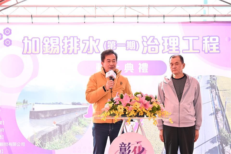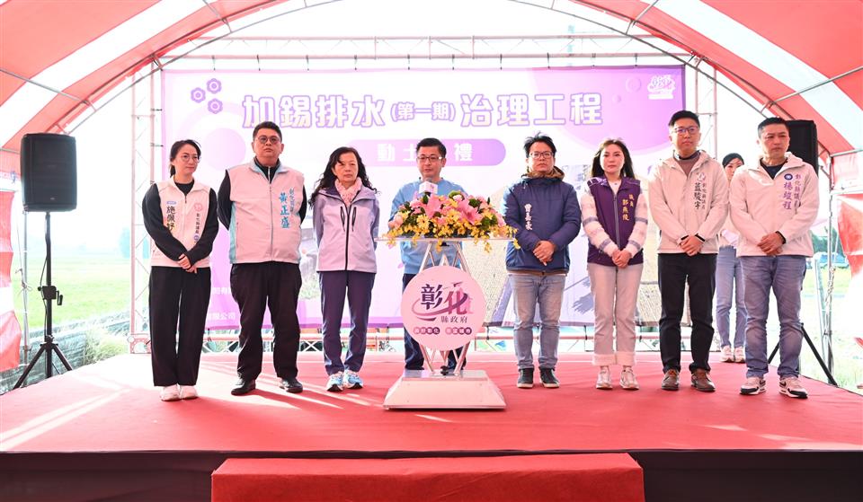 為改善強降雨時大村鄉及秀水鄉特定區域易淹水的情形,彰化縣政府挹注4,875萬元經費,辦理「加錫排水(第一期)治理工程」。今(7)日上午在秀水鄉板本排水陝西橋旁舉行動土典禮,彰化縣長王惠美與會。王縣長表示,加錫排水(第一期)治理工程是地方引領期盼的重要建設,113年凱米颱風造成錫安路嚴重淹水,當時受康佰武村長所託現勘,隨即責成水利單位研議並向中央申請經費。惟因114年7月豪雨再度致災,感謝議長謝典霖及所有議員對預算的支持,優先動用縣款4,875萬元先行辦理加錫排水第一期改善工程,這次工程包含地方長期建議的箱涵設施,總長度為640公尺,已要求施工單位加派人手、加速施工,在如質前提下縮短原本300日曆天的工期,期能早日完工,協助鄉親免受淹水之苦。