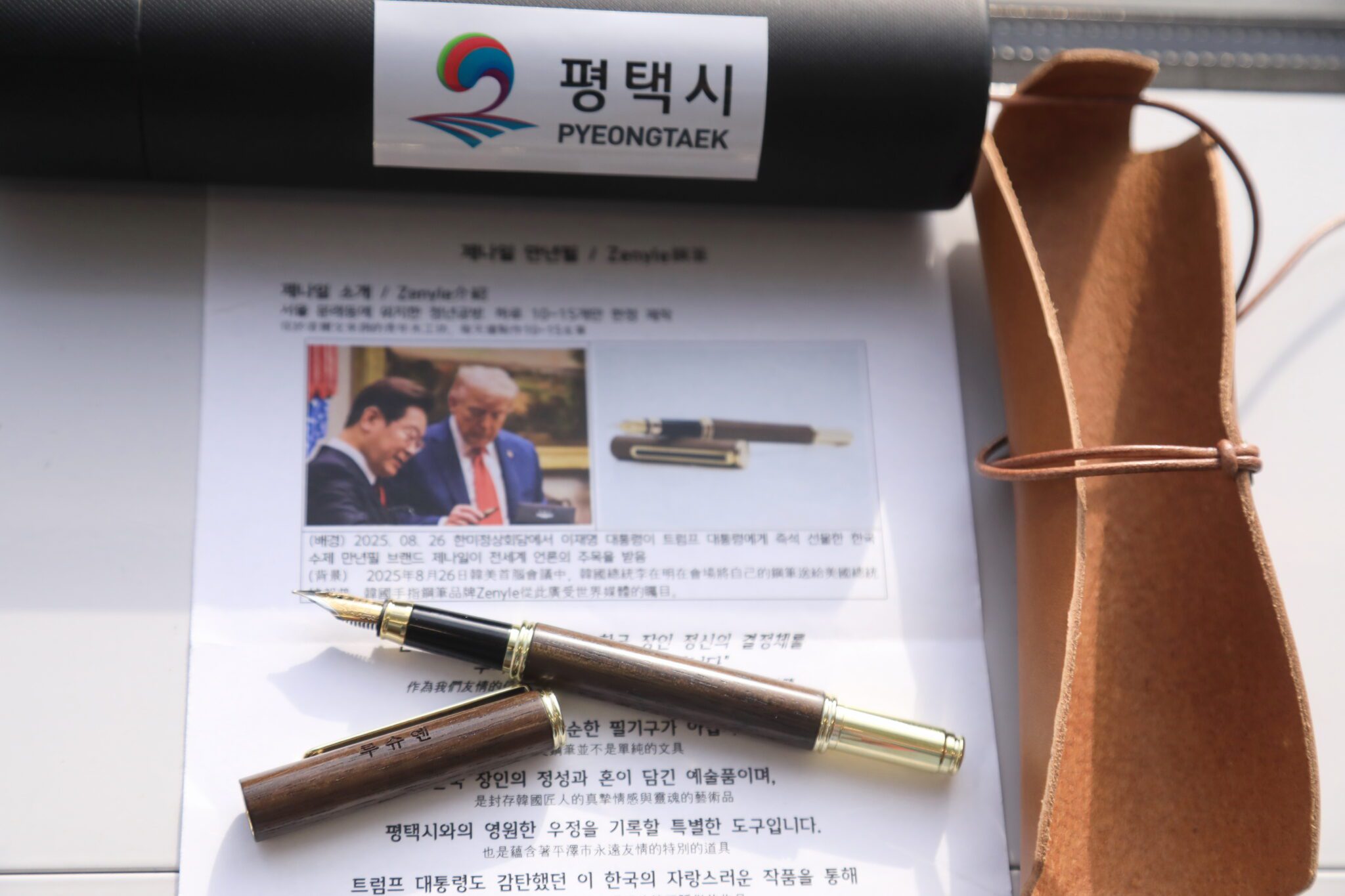 今日簽署儀式上,雙方互動十分熱絡,會後互贈紀念品時,盧市長特選代表台中文化的「湖心亭8吋漆盤」與「手採梨山茶」致贈鄭市長,適逢中台灣燈會即將舉辦,盧市長也特別致贈超萌的「姆明(Moomin)」小提燈,讓韓國貴賓相當驚喜;鄭市長則回贈特別手工訂製、刻上盧市長名字的木製鋼筆禮盒;鄭市長特別強調,這支鋼筆與南韓總統李在明去年8月贈送給美國川普總統的鋼筆同款,當時更引爆一連串的「鋼筆外交」熱潮,並請盧市長以此筆簽署象徵雙方友好交流備忘錄,寓意深刻,象徵台中市與平澤市非凡的城市外交情誼。
