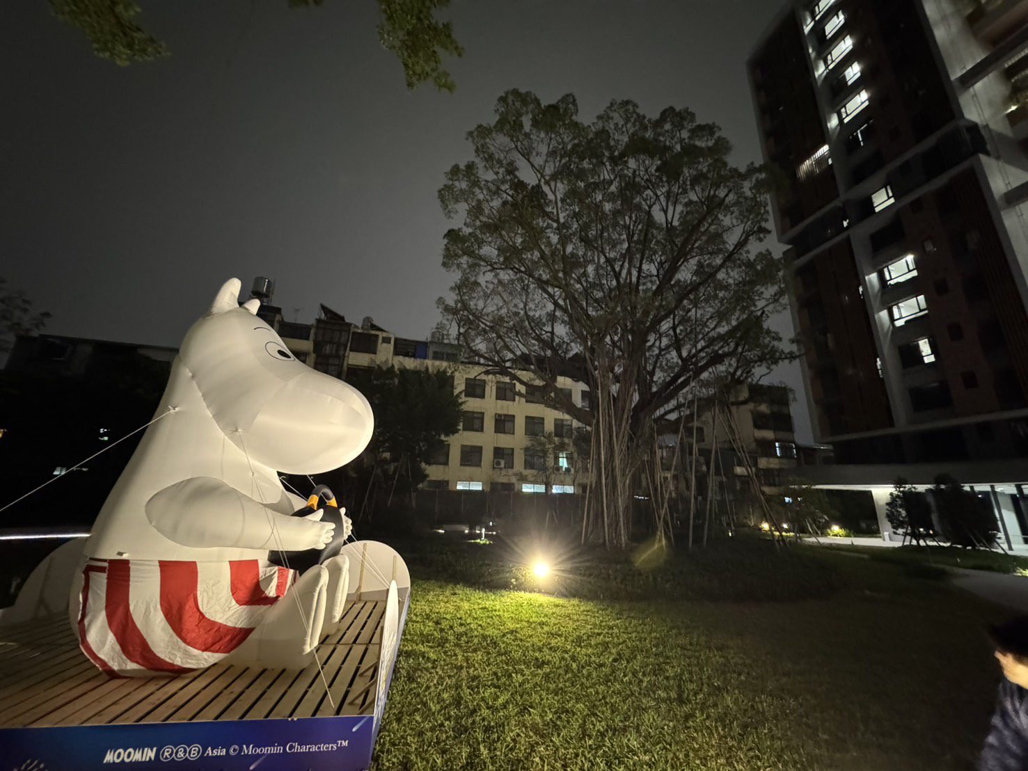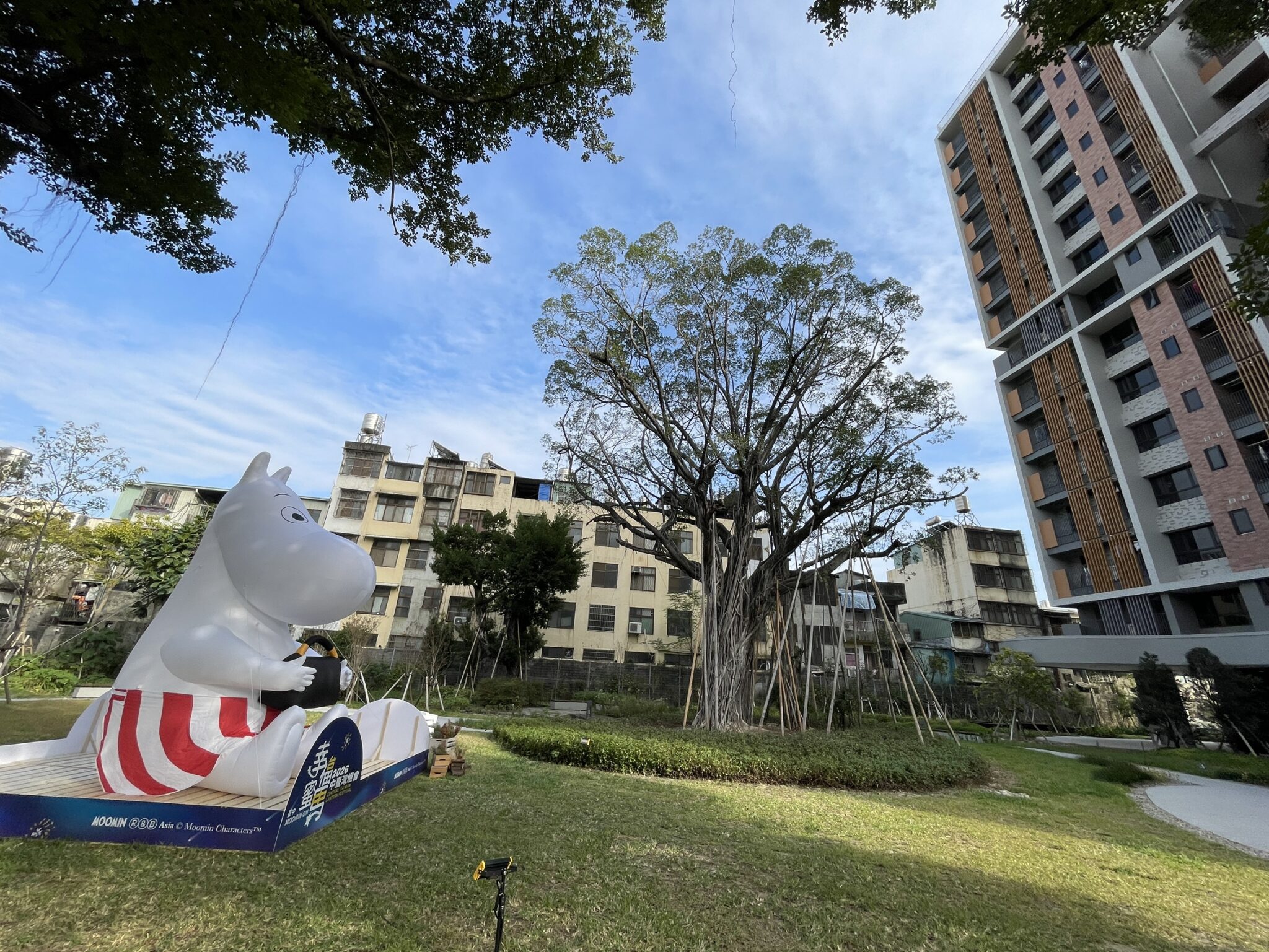 都發局住宅處長陳煒壬說明,「東區恊園好宅」基地前身為故總統行館「恊園」,園區內保留多棵珍貴老樹,規劃時以「與環境共生共融」為核心理念,主動縮減建築量體,保留約610坪的大面積開放綠地,打造結合鄰里公園概念的生態好宅。寬闊的綠意空間不僅延續基地原有的自然樣貌,也成為市民可親近、可停留的城市綠洲,與姆明一族(The Moomins)所象徵的森林、自然與療癒意象相呼應,因此特別規劃在東區恊園好宅設置姆明媽媽(Moomin Mama)氣模公仔,讓幸福角色走進生活角落,為城市增添溫暖與療癒的景象。