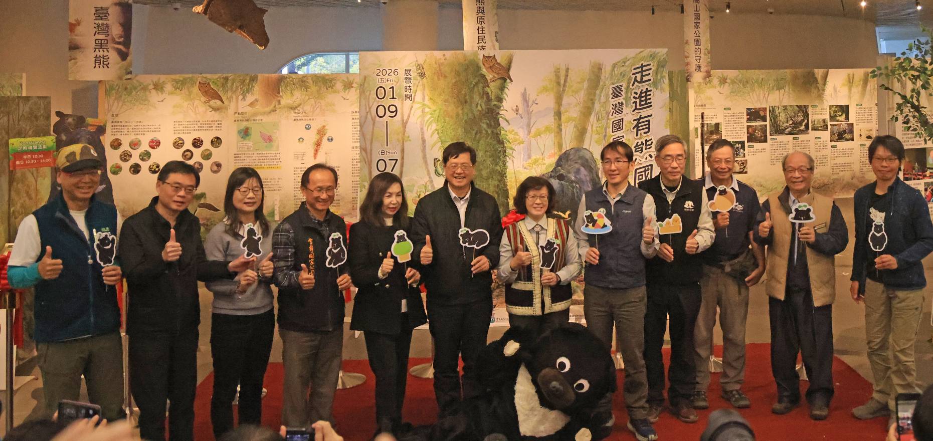 內政部國家公園署今(9)日起於國立公共資訊圖書館 1 樓藝文展示廳推出「走進有熊國─臺灣國家公園黑熊保育特展」,展期至 7 月 5 日(星期日) ,邀請民眾於市區近距離認識臺灣森林中的靈魂角色─臺灣黑熊,推廣臺灣黑熊生態保育。國家公園署長王成機表示,本次特展由玉山、太魯閣及雪霸三個 高山型國家公園管理處攜手國資圖辦理,並獲農業部生物多樣 性研究所及社團法人台灣黑熊保育協會鼎力協助,完整呈現臺 灣國家公園 30 年來臺灣黑熊重要研究與保育成果,傳遞「與熊 共好共存」的重要理念。