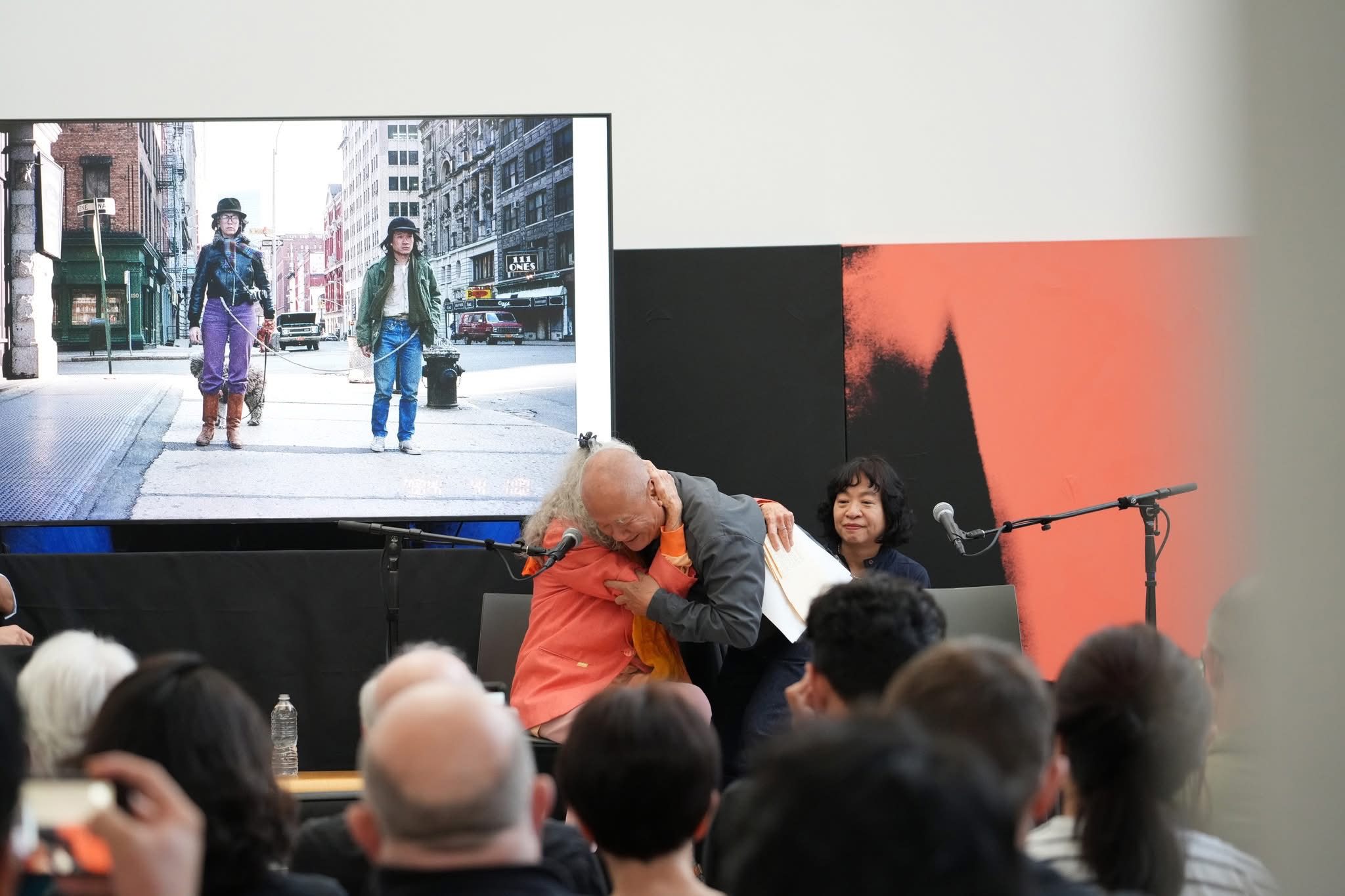 藝術家謝德慶在紐約回顧展的開幕中,與1983-1984年間合作《繩子》的藝術家Linda Montano 同台分享,場面動人。  圖片提供 公視