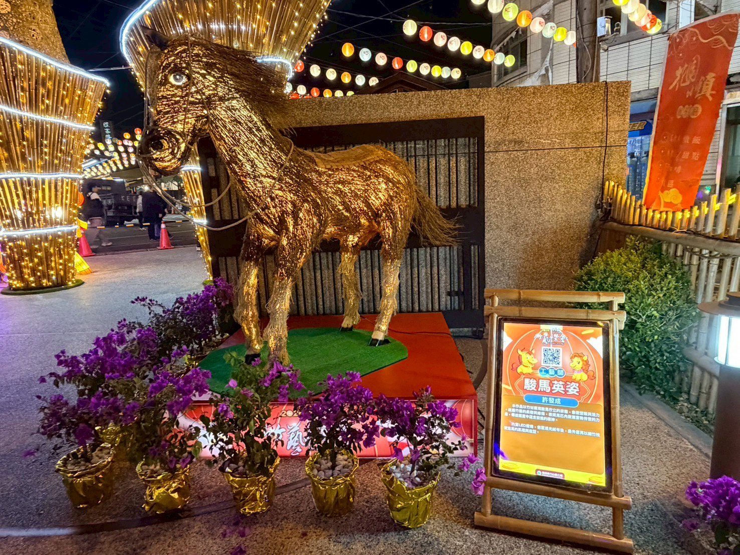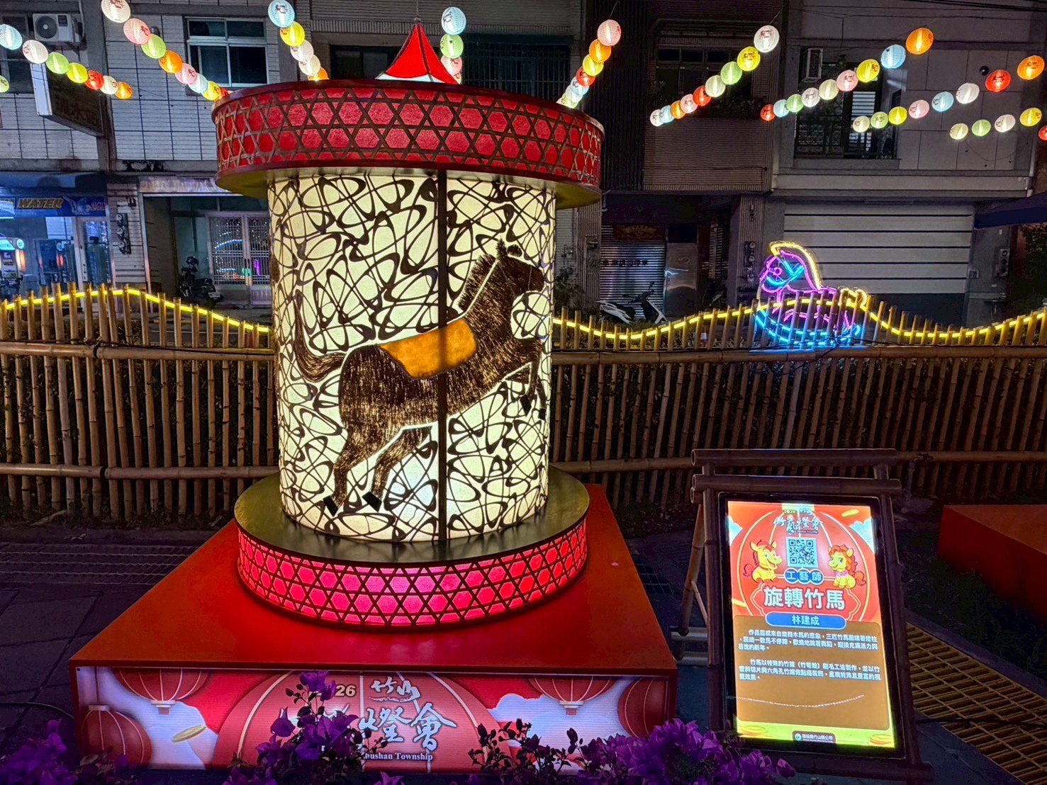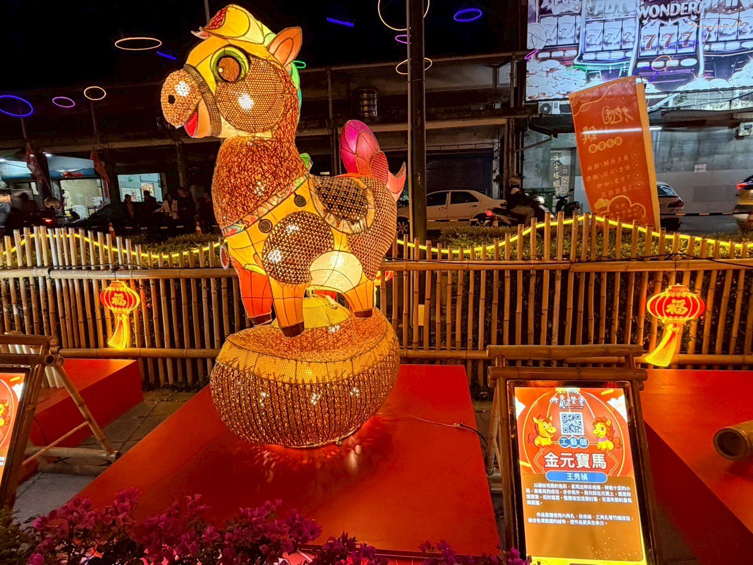 本次主燈「馬躍蝶舞」特邀知名竹藝大師邱錦緞親自操刀,